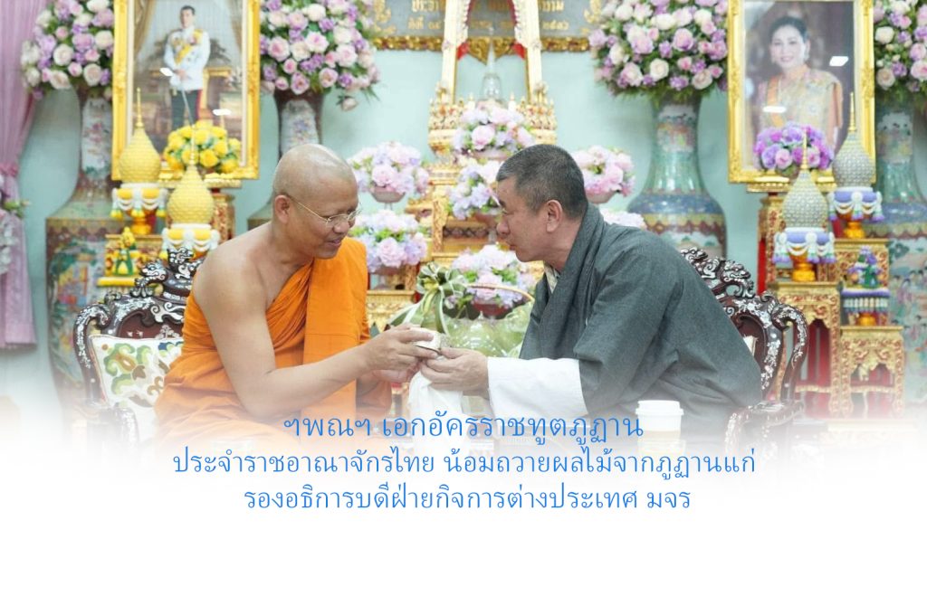 ข่าวกิจกรรม, ข่าวกิจกรรม, ข่าวประชาสัมพันธ์, ข่าวประชาสัมพันธ์, ข่าวมหาวิทยาลัย, ข่าวมหาวิทยาลัยH.E.Kinzang Dorji, Ambassador Extraordinary and Plenipotentiary of Bhutan to Thailand and Permanent Representative of UNESCAP ฯพณฯ เอกอัครราชทูตภูฏาน ประจำราชอาณาจักรไทย น้อมถวายผลไม้จากภูฏานแก่ รองอธิการบดีฝ่ายกิจการต่างประเทศ มจร Likit / 27/09/2025 วันพฤหัสบดีที่ ๒๕ กั