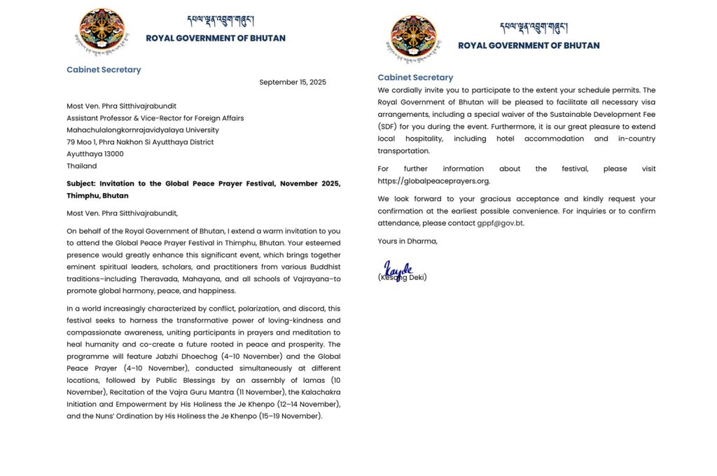 ข่าวกิจกรรม, ข่าวกิจกรรม, ข่าวประชาสัมพันธ์, ข่าวประชาสัมพันธ์, ข่าวมหาวิทยาลัย, ข่าวมหาวิทยาลัยเลขาธิการคณะรัฐมนตรี แห่งราชอาณาจักรภูฏาน อาราธนารองอธิการบดีฝ่ายกิจการต่างประเทศ มหาวิทยาลัยมหาจุฬาลงกรณราชวิทยาลัย เยือนราชอาณาจักรภูฏาน อย่างเป็นทางการ Likit / 27/09/2025 เลขาธิการคณะรัฐมนตรี