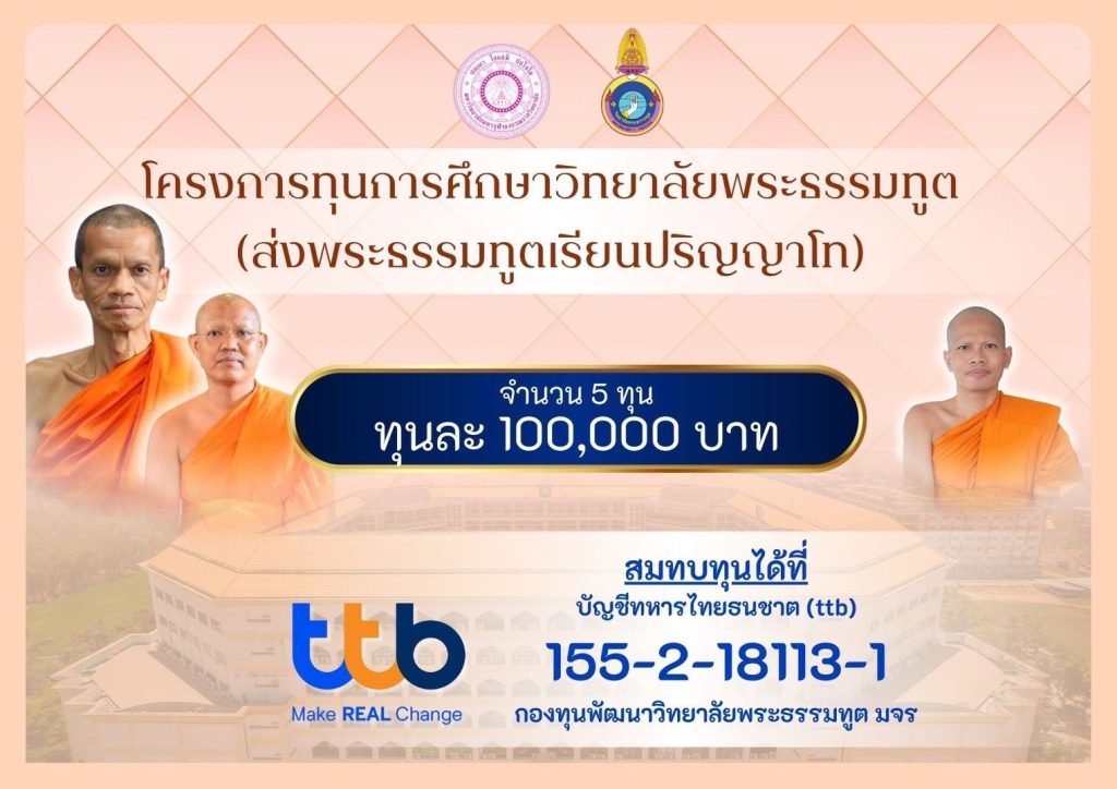 ข่าวกิจกรรม วิทยาลัยพระธรรมทูต จัดโครงการทุนการศึกษาวิทยาลัยพระธรรมทูต ส่งพระธรรมทูตเรียนปริญญาโท มจร อ่านต่อ » 23/12/2025