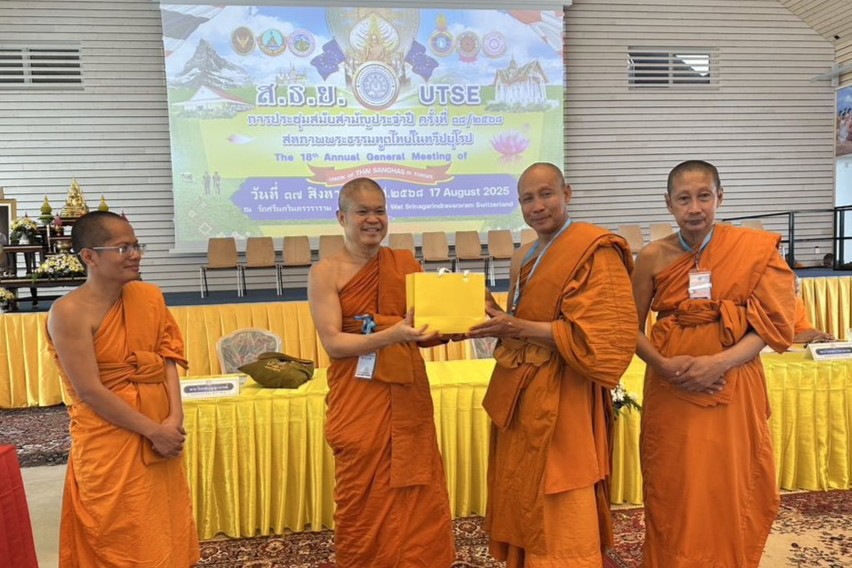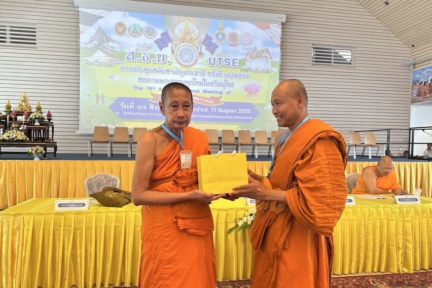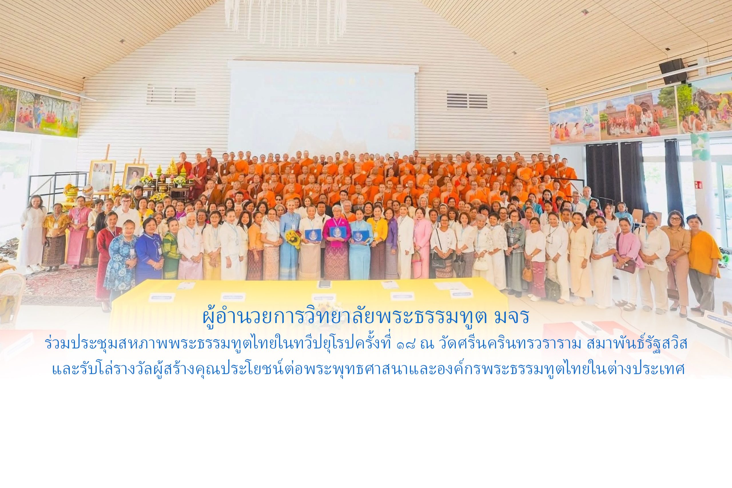 วันอาทิตย์ที่ ๑๗ สิงหาคม พ.ศ.๒๕๖๘ เวลา ๐๙.๐๐ น. ณ วัดศรีนครินทรวราราม สมาพันธ์รัฐสวิส พระเดชพระคุณพระสิทธิวัชรบัณฑิต รองอธิการบดีฝ่ายกิจการต่างประเทศ มจร ได้มอบหมายให้ พระครูสุตรัตนบัณฑิต ผู้อำนวยการวิทยาลัยพระธรรมทูต และ พระมหาศักดิ์ชาย โกวิโท ผู้อำนวยการสำนักวิชาการ วิทยาลัยพระธรรมทูต มจร เป็นผู้แทนในการเข้าร่วมประชุมสหภาพพระธรรมทูตไทยในทวีปยุโรปสมัยสามัญประจำปี ครั้งที่ ๑๘/๒๕๖๘ โดยมีพระเดชพระคุณพระเทพสารบัณฑิต รองอธิการบดีฝ่ายวางแผนและพัฒนา เป็นหัวหน้าคณะ มจร และมีพระราชวชิรศาสนวิเทศ ประธานคณะกรรมการบริหารสหภาพพระธรรมทูตไทยในทวีปยุโรป เป็นประธานการประชุม การนี้มีพระธรรมทูตและพุทธศาสนิกชนจากวัดต่างในทวีปยุโรป จำนวน 125 วัด เข้าร่วมประชุมโดยพร้อมเพรียงกัน
