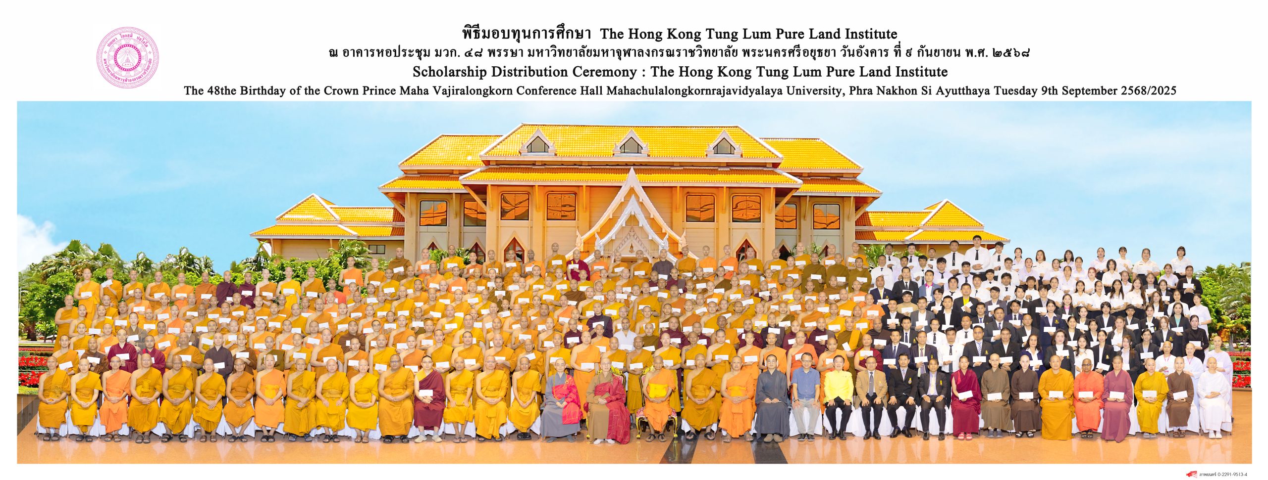 Most Venerable Shi Kuan Yun ประธานพุทธสมาคมฮ่องกง และ The Hong Kong Tung Lum Pure Land lnstitute เขตบริหารพิเศษฮ่องกง สาธารณรัฐประชาชนจีน มีกุศลศรัทธาถวายทุนการศึกษาแก่นิสิต มหาวิทยาลัยมหาจุฬาลงกรณราชวิทยาลัย จำนวน ๓๐๔ ทุน เป็นจำนวนเงิน ๒,๐๐๐,๐๐๐ บาท (สองล้านบาทถ้วน) โดยมหาวิทยาลัยมหาจุฬาลงกรณราชวิทยาลัยมีคำสั่งแต่งตั้งคณะกรรมการพิจารณามอบทุนการศึกษาแก่นิสิต มจร ที่ ๑๔๕๘ / ๒๕๖๘ เรื่อง มอบทุนการศึกษาแก่นิสิต มจร วันที่ ๗ สิงหาคม พ.ศ. ๒๕๖๘