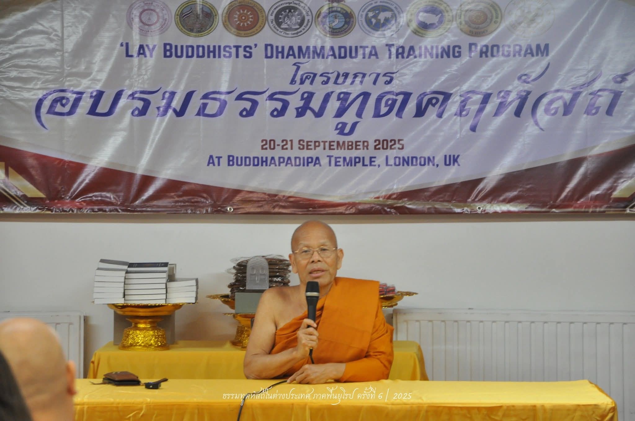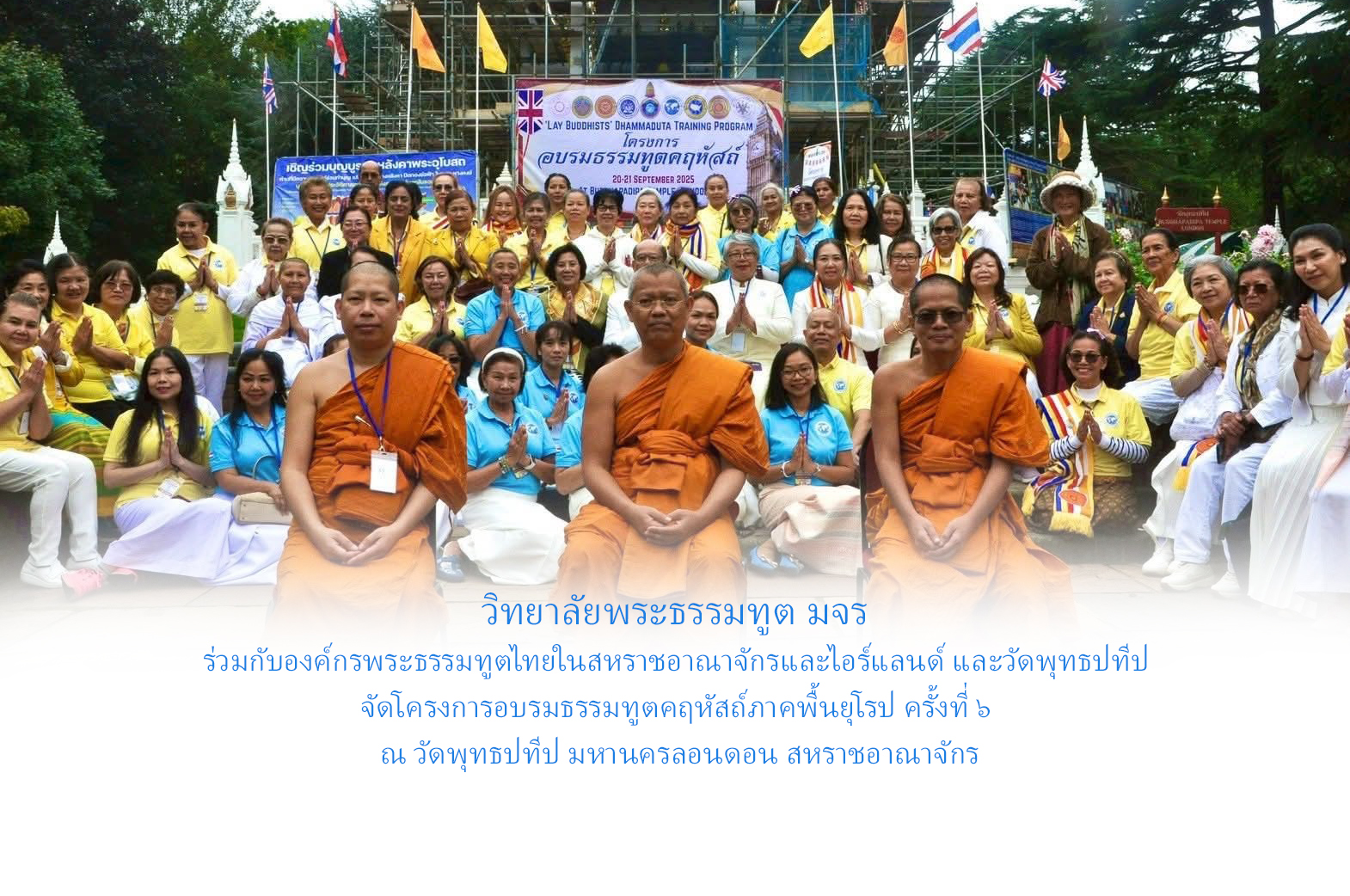 วิทยาลัยพระธรรมทูต มหาวิทยาลัยมหาจุฬาลงกรณราชวิทยาลัย ร่วมกับ องค์กรพระธรรมทูตไทยในสหราชอาณาจักรและไอร์แลนด์ และวัดพุทธปทีป มหานครลอนดอน ดำเนินงานโครงการอบรมธรรมทูตคฤหัสถ์ภาคพื้นยุโรป ครั้งที่ ๖ ภายใต้ความเห็นชอบของมหาเถรสมาคม ณ วัดพุทธปทีป มหานครลอนดอน สหราชอาณาจักร ระหว่างวันที่ ๑๙-๒๑ กันยายน ๒๕๖๘