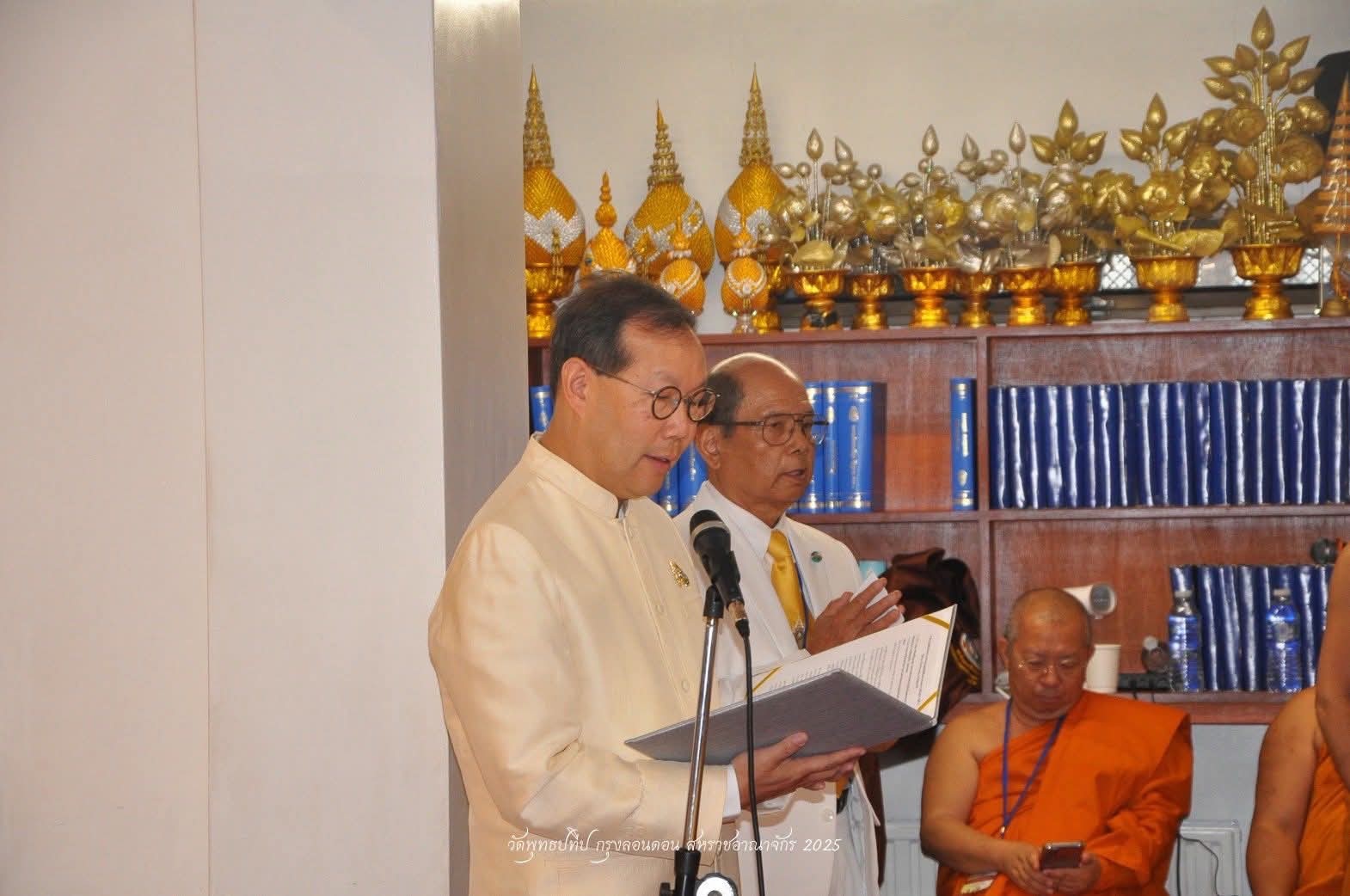 ในนาม วิทยาลัยพระธรรมทูต มหาวิทยาลัยมหาจุฬาลงกรณราชวิทยาลัย ขอกราบขอบพระคุณ มหาเถรสมาคม ที่เมตตาเห็นชอบโครงการอบรมธรรมทูตคฤหัสถ์ในต่างประเทศ ขอกราบขอบพระคุณ พระพรหมวัชรธีราจารย์ อธิการบดี ที่เมตตาเป็นที่ปรึกษาและมอบนโยบายโครงการอบรมธรรมทูตคฤหัสถ์ในต่างประเทศ ขอขอบคุณคณะสงฆ์วัดจงไถซาน ที่เมตตาให้เกียรติอุปถัมภ์วิทยาลัยพระธรรมทูต และขอขอบคุณ พระราชวิเทศปัญญาคุณ ประธานองค์กรพระธรรมทูตไทยในสหราชอาณาจักรและไอร์แลนด์ และเจ้าอาวาสวัดพุทธปทีป พร้อมด้วยคณะกรรมการบริหารองค์กรพระธรรมทูตไทยในสหราชอาณาจักรและไอร์แลนด์ และคณะสงฆ์วัดพุทธปทีป พร้อมด้วยสมัชชาสงฆ์ไทยในสหรัฐอเมริกา สหภาพพระธรรมทูตไทยในยุโรป และขอขอบคุณ ฯพณฯ ณัฐวัฒน์ กฤษณามระ เอกอัครราชทูตไทย ณ กรุงลอนดอน เป็นประธานฝ่ายคฤหัสถ์ ที่เมตตาให้เกียรติและให้ความร่วมมือกับวิทยาลัยพระธรรมทูต มจร ในการเผยแผ่พระพุทธศาสนาในต่างประเทศ มา ณ โอกาสนี้