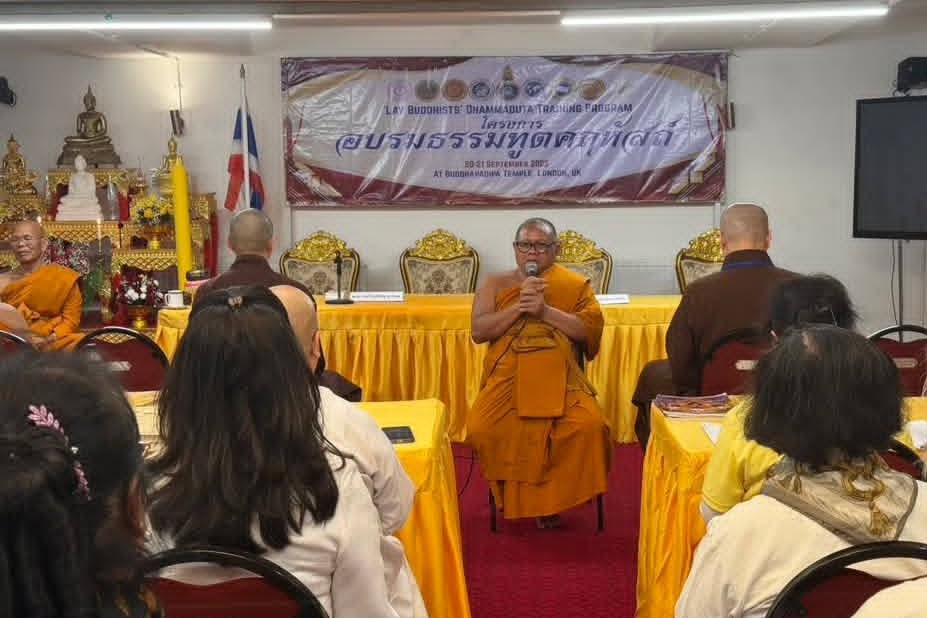 วันอาทิตย์ที่ ๒๑ กันยายน พ.ศ.๒๕๖๘ เวลา ๐๘.๓๐ น. -๑๖.๓๐ น. พระมหาเถระที่เปี่ยมด้วยเมตตาธรรมจากยุโรป อเมริกา และจากพระอารามต่างๆ ในสหราชอาณาจักร เมตตาเป็นวิทยากรผู้ทรงคุณวุฒิบรรยายในโครงการอบรมธรรมทูตคฤหัสถ์ภาคพื้นยุโรป ครั้งที่ ๖ อาทิ พระราชวชิรศาสนวิเทศ ประธานสหภาพพระธรรมทูตไทยในยุโรป พระวิเทศสิทธิธรรมาภรณ์ รองประธานสมัชชาสงฆ์ไทยในสหรัฐอเมริกา พระวิเทศปุญญาภรณ์ เจ้าอาวาสวัดพุทธาราม สวีเดน พระครูปลัดสุวัฒนอาจารคุณ รองประธานสหภาพพระธรรมทูตไทยในยุโรป พระมหาภาสกร ปิโยภาโส ป.ธ.๙ รองประธานองค์กรพระธรรมทูตไทยในสหราชอาณาจักรและไอร์แลนด์ พระครูสุตพุทธิวิเทศ รองประธานองค์กรพระธรรมทูตไทยในสหราชอาณาจักรและไอร์แลนด์ พร้อมด้วยพระธรรมทูตสายต่างประเทศในสหราชอาณาจักร สก็อตแลนด์ ยุโรป และอเมริกา