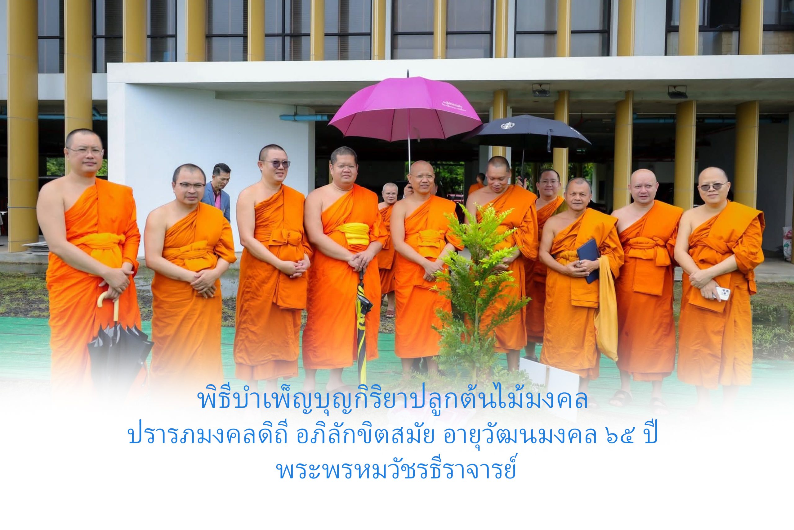 วันเสาร์ที่ ๒๗ กันยายน พ.ศ.๒๕๖๘ เวลา ๐๙.๓๙ น. พระพรหมวัชรธีราจารย์ อธิการบดี มจร เมตตาเป็นประธานในมงคลพิธีบำเพ็ญบุญกิริยาปลูกต้นไม้มงคลเปิดป้ายอาคาร ปรารภมงคลดิถี อภิลักขิตสมัย อายุวัฒนมงคล ๖๕ ปี พระพรหมวัชรธีราจารย์ ณ มณฑลพิธีด้านหลังอาคาร สำนักงานอธิการบดี มจร พระนครศรีอยุธยา