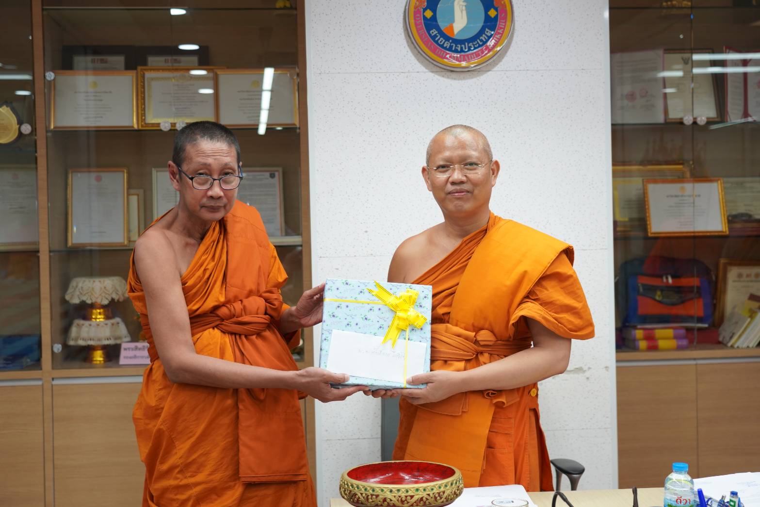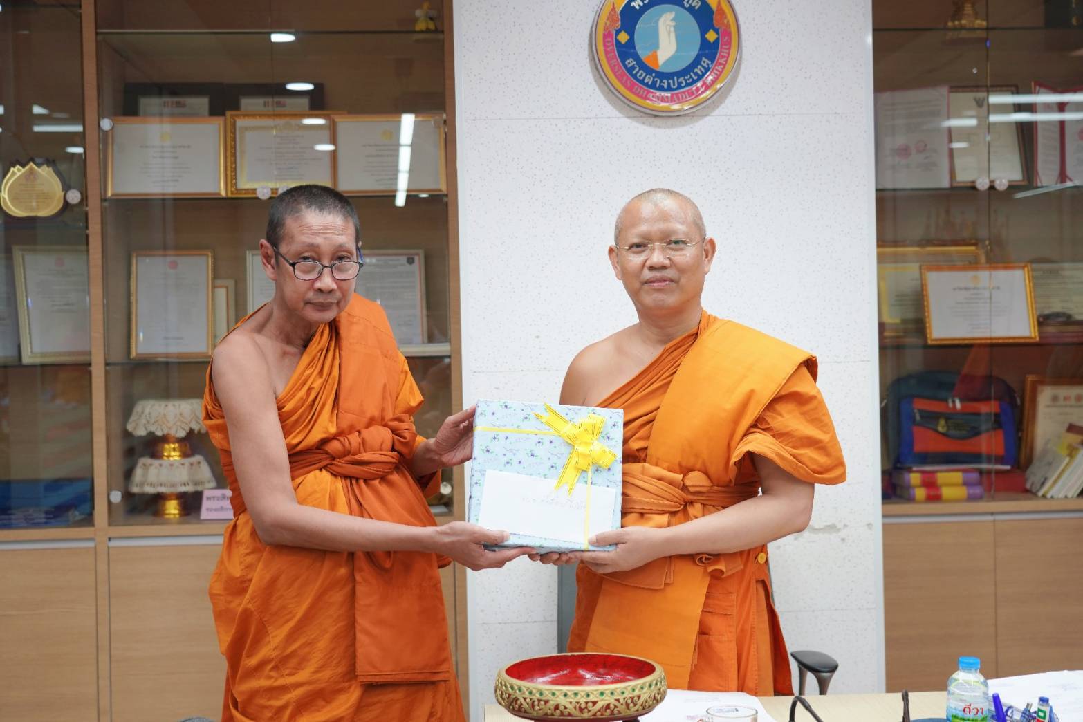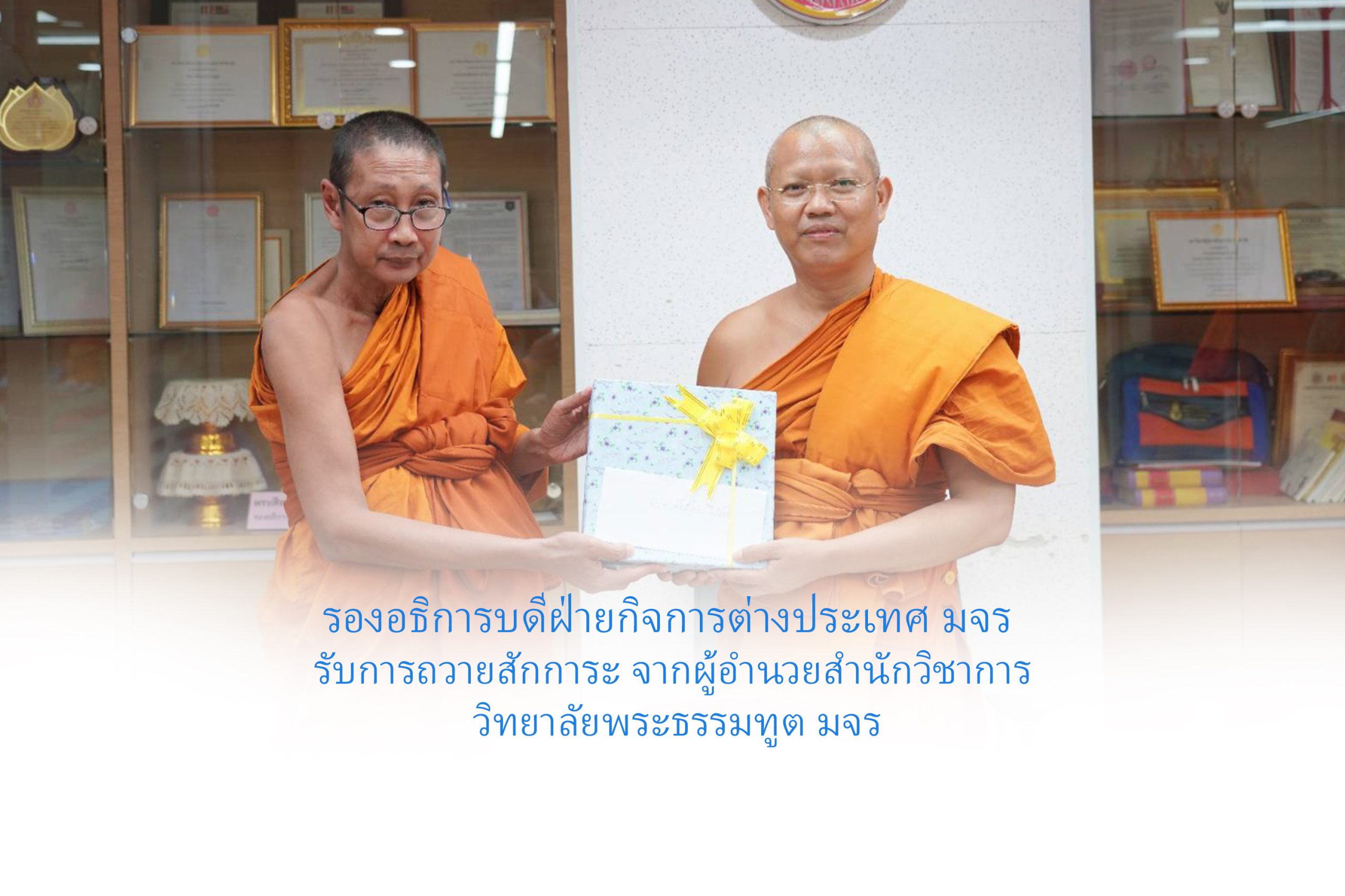 รองอธิการบดีฝ่ายกิจการต่างประเทศ มจร รับการถวายสักการะ จากผู้อำนวยสำนักวิชาการ วิทยาลัยพระธรรมทูต มจร