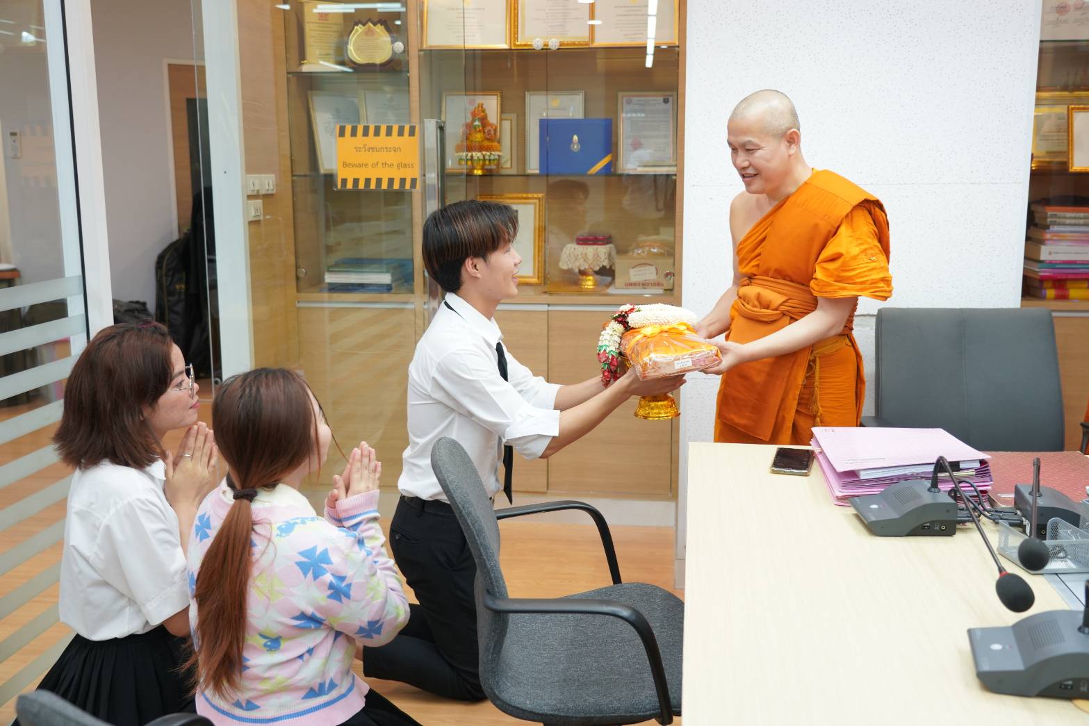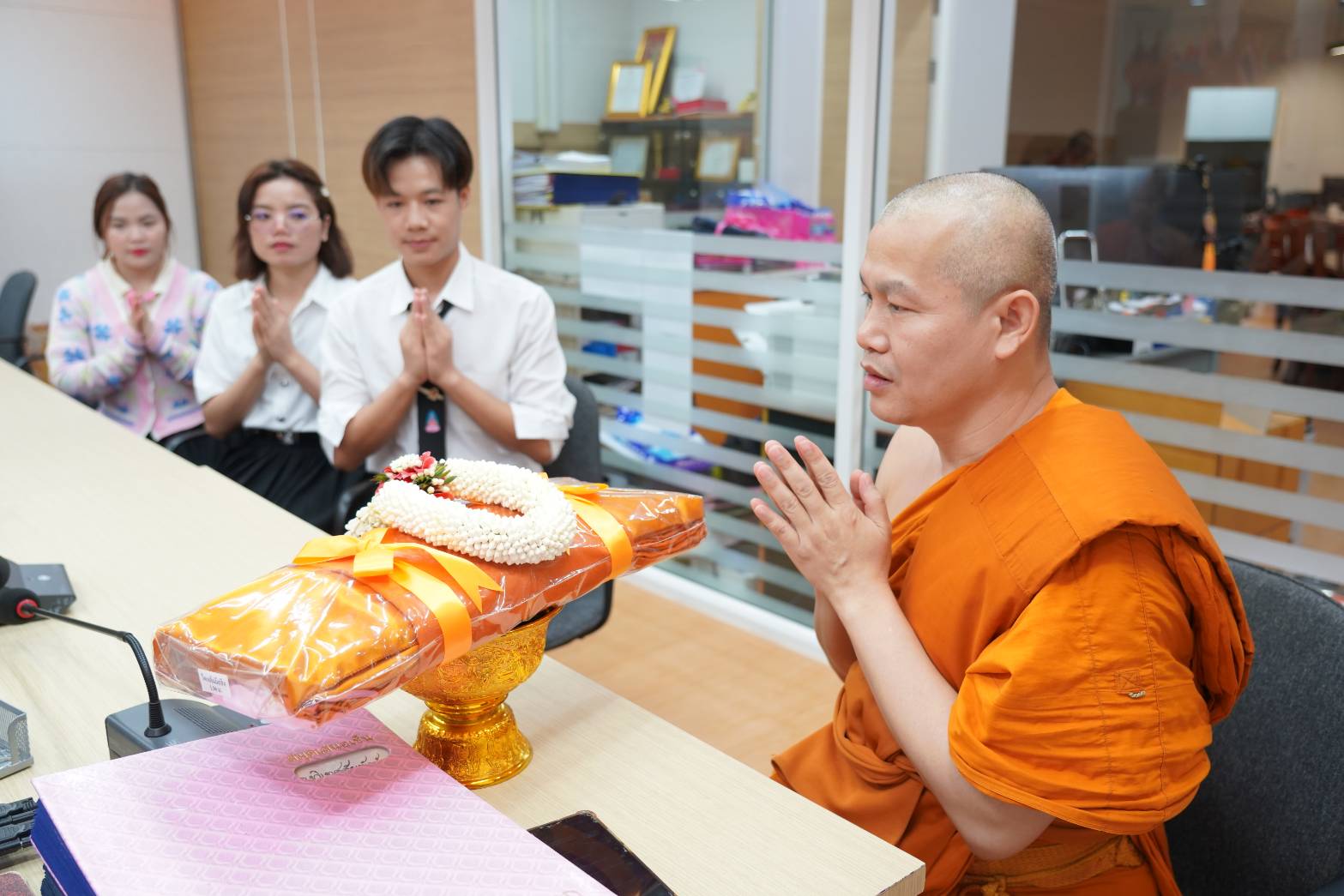 วันพฤหัสบดีที่ ๙ ตุลาคม พ.ศ. ๒๕๖๘ เวลา ๐๙.๐๐ น. พระสมุห์สิริวรรณะ สิริวณฺโณ รักษาการผู้อำนวยการกองวิเทศสัมพันธ์ สำนักงานอิการบดี รับการถวายสักการะจาก พระบุญมี ญาณเมธี นายกองค์กรนิสิต มจร ส่วนกลาง และคณะกรรมการบริหารองค์กรนิสิต มจร ส่วนกลาง ณ ห้องประชุมกองวิเทศสัมพันธ์ มจร พระนครศรีอยุธยา