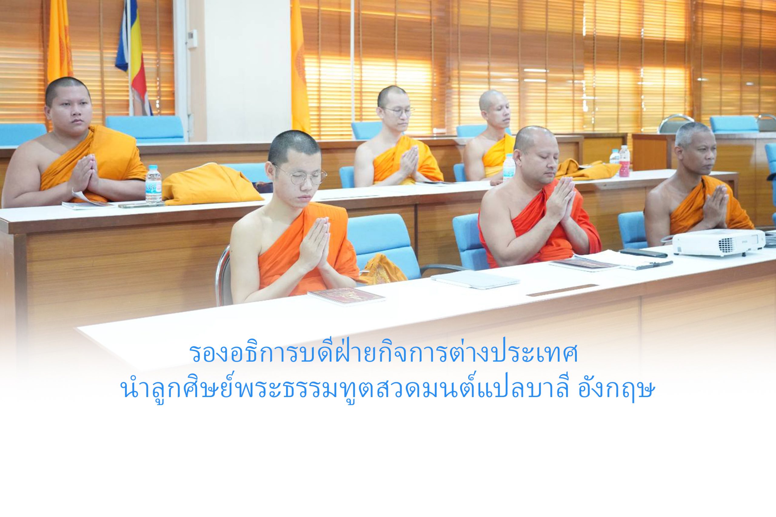 วันพุธที่ ๒๒ ตุลาคม พ.ศ.๒๕๖๘ เวลา ๐๙.๐๙ น. พระสิทธิวัชรบัณฑิต รองอธิการบดีฝ่ายกิจการต่างประเทศ มจร นำลูกศิษย์หลักสูตรประกาศนียบัตรพระธรรมทูต สวดมนต์แปลบาลี อังกฤษ พร้อมกับอำนวยพรและให้กำลังใจลูกศิษย์ทุกรูป ประสพสุขสวัสดี เจริญรุ่งเรืองในพระธรรมวินัยสืบไป ณ ห้องเรียนสันติศึกษา อาคารเรียนรวม มจร พระนครศรีอยุธยา