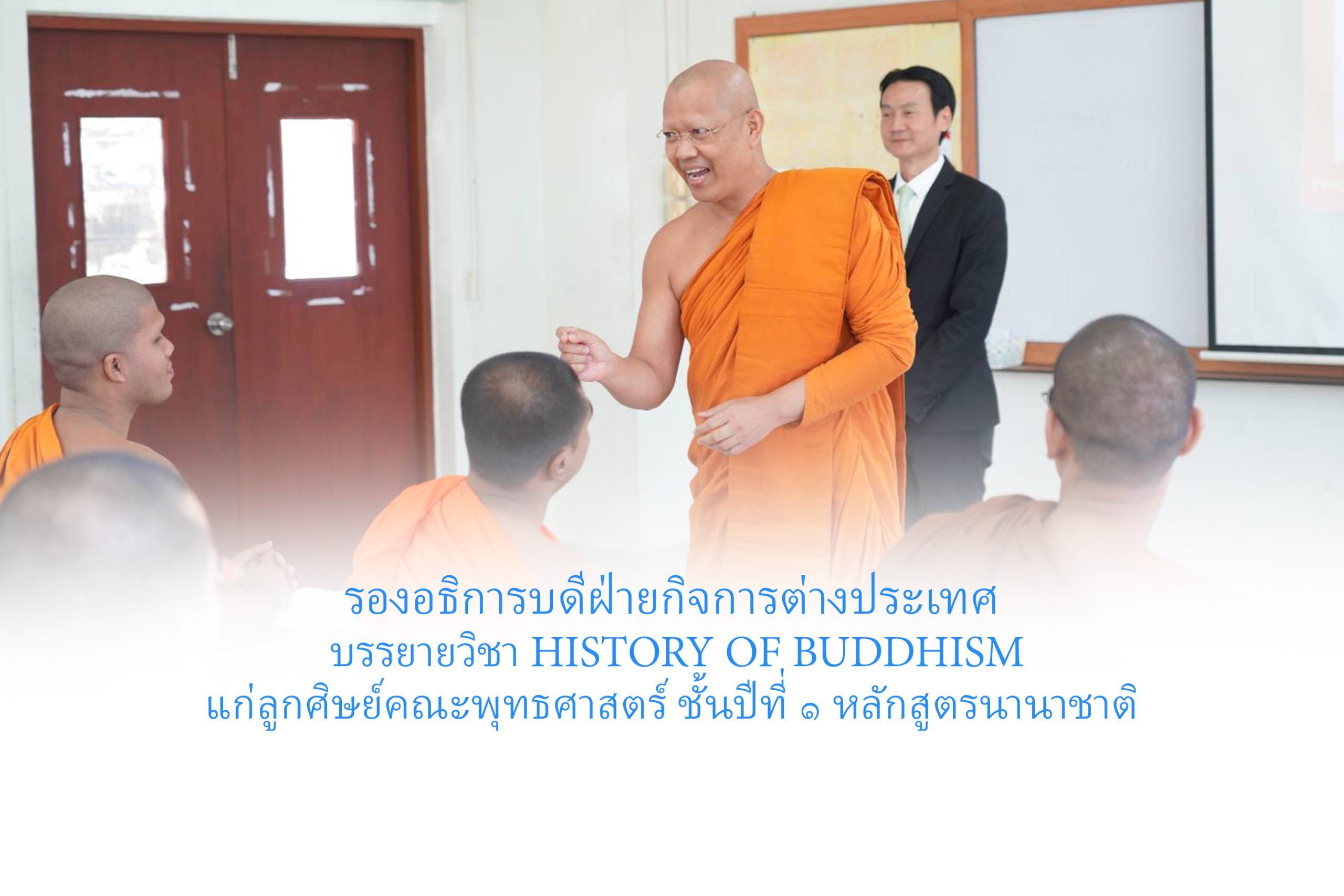 วันพุธที่ ๒๒ ตุลาคม พ.ศ.๒๕๖๘ เวลา ๐๙.๔๕ น. พระสิทธิวัชรบัณฑิต รองอธิการบดีฝ่ายกิจการต่างประเทศ มจร ประธานคณะกรรมการประจำคณะพุทธศาสตร์ บรรยายวิชา History of Buddhism แก่ลูกศิษย์คณะพุทธศาสตร์ ชั้นปีที่ ๑ หลักสูตรนานาชาติ ณ ห้องเรียน D 517-D518 อาคารเรียนรวม มจริงพระนครศรีอยุธยา