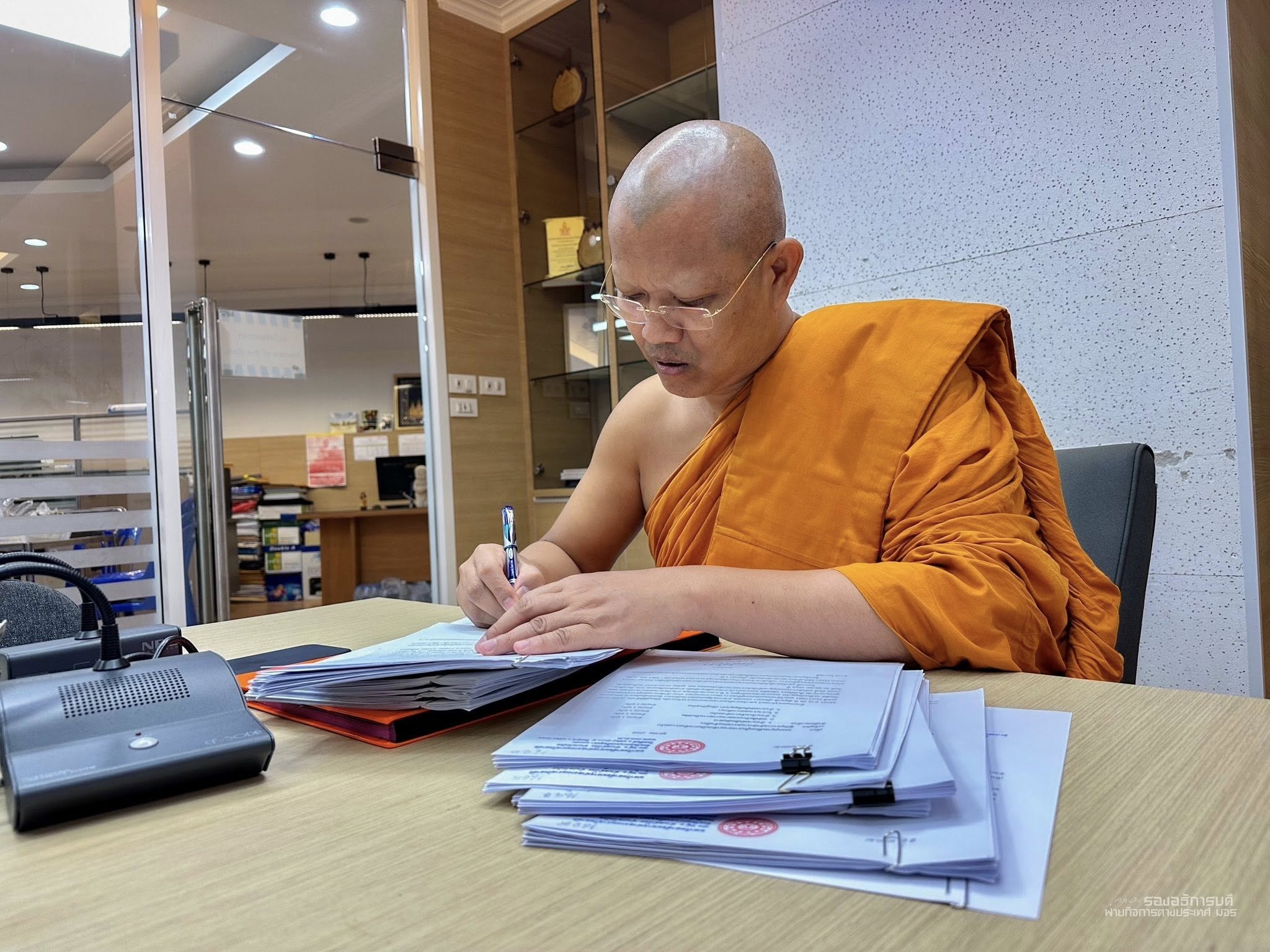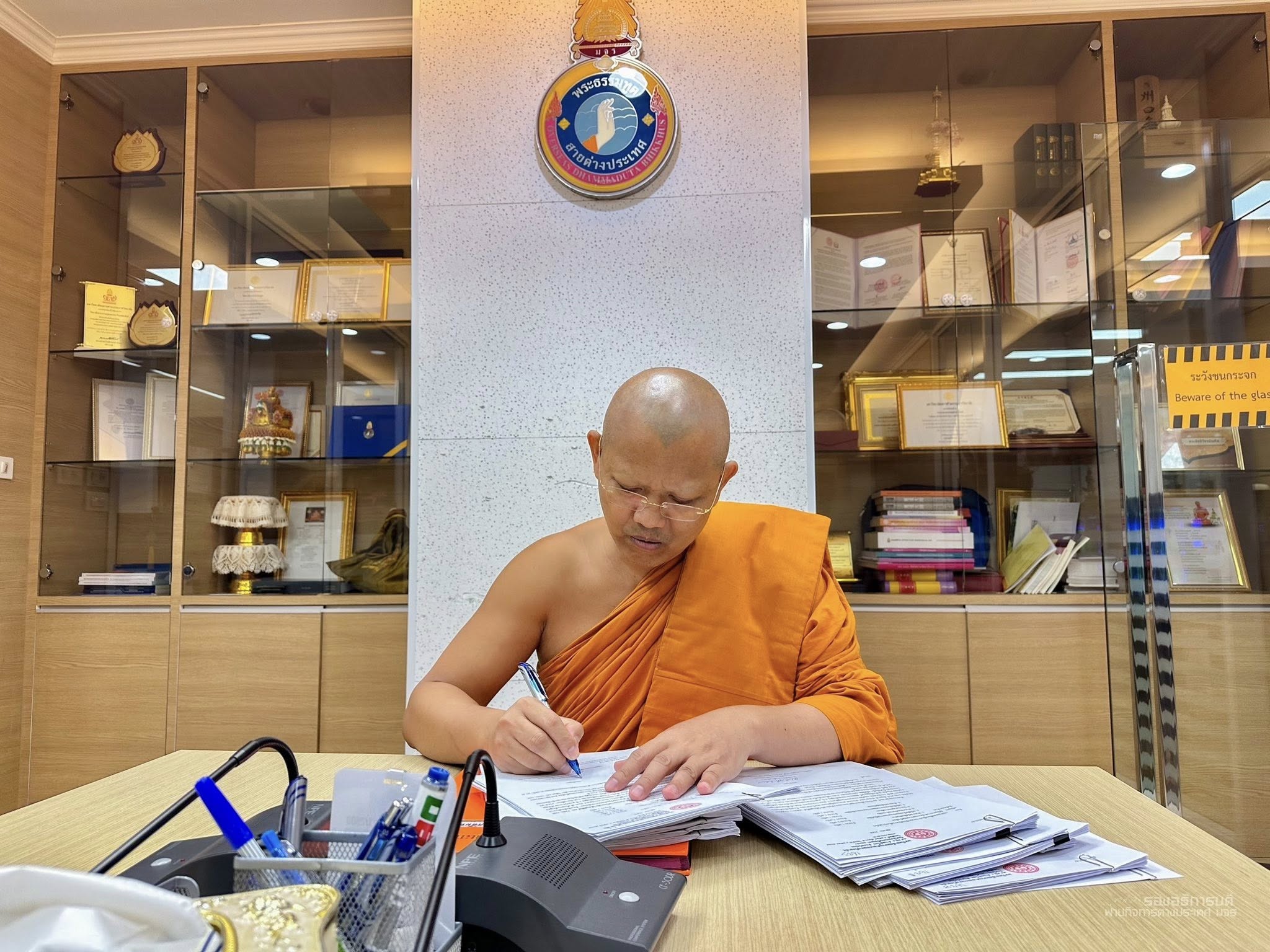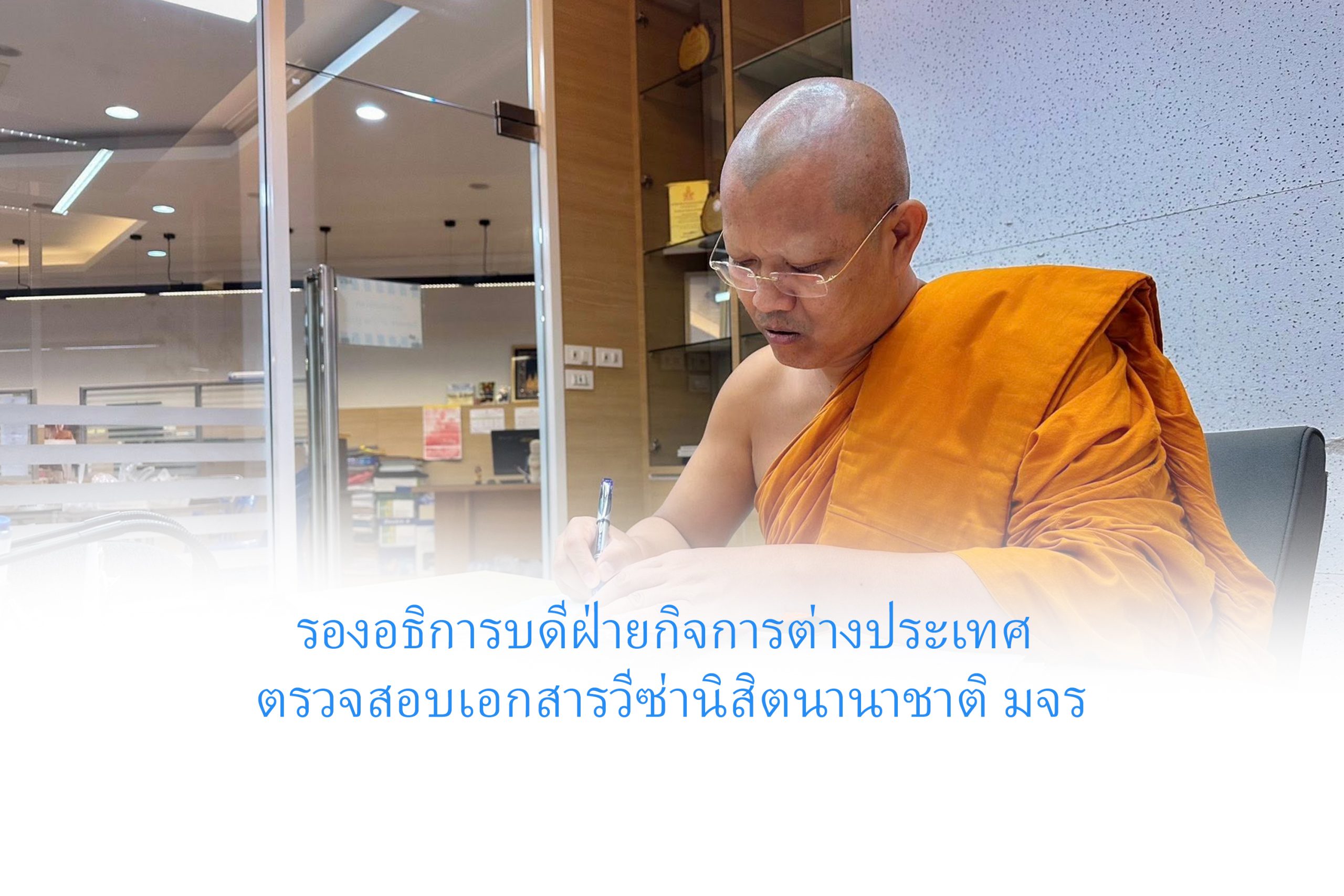 วันพุธที่ ๒๒ ตุลาคม พ.ศ.๒๕๖๘ เวลา ๑๐.๑๕ น. พระสิทธิวัชรบัณฑิต รองอธิการบดีฝ่ายกิจการต่างประเทศ มหาวิทยาลัยมหาจุฬาลงกรณราชวิทยาลัย ตรวจสอบเอกสารวีซ่านิสิตนานาชาติ มจร ก่อนจะลงนามรับรอง ณ สำนักงานวิทยาลัยพระธรรมทูตและกองวิเทศสัมพันธ์ มจร พระนครศรีอยุธยา
