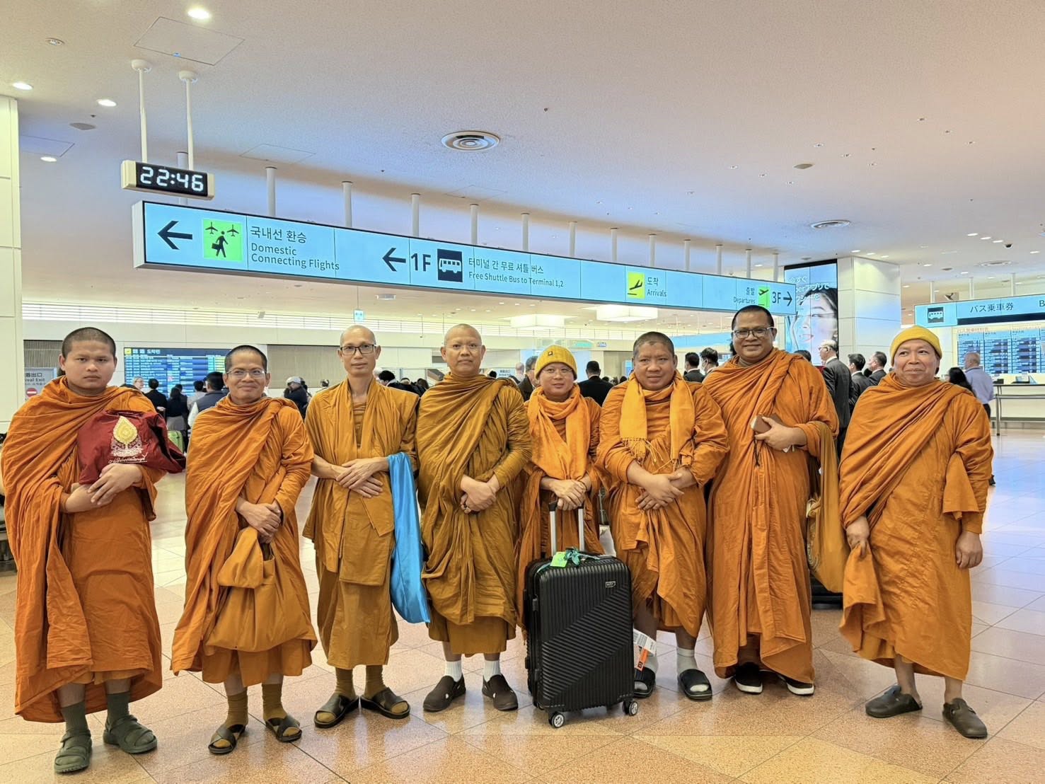 วันศุกร์ที่ ๒๔ ตุลาคม พ.ศ.๒๕๖๘ เวลา ๒๒.๑๕ น. พระสิทธิวัชรบัณฑิต รองอธิการบดีฝ่ายกิจการต่างประเทศ มจร เป็นประธานนำคณะผู้บริหารและกรรมการอุปถัมภ์วิทยาลัยพระธรรมทูต เดินทางถึงเดินทางถึงท่าอากาศยานนานาชาติฮาเนดะ มหานครโตเกียว ประเทศญี่ปุ่น โดยสวัสดิภาพ โดยมี พระครูโฆสาภิวัฒน์ เจ้าอาวาสวัดระฆังญี่ปุ่น และ พระครูพิพิธวรกิจจาทร รองเจ้าอาวาสวัดระฆังญี่ปุ่น พร้อมด้วยพระธรรมทูตสายต่างประเทศ ประจำประเทศญี่ปุ่น และคณะสงฆ์วัดระฆังญี่ปุ่น ให้เกียรติถวายการปฏิสันถารอย่างสมเกียรติและอบอุ่น ณ ท่าอากาศยานนานาชาติฮาเนดะ