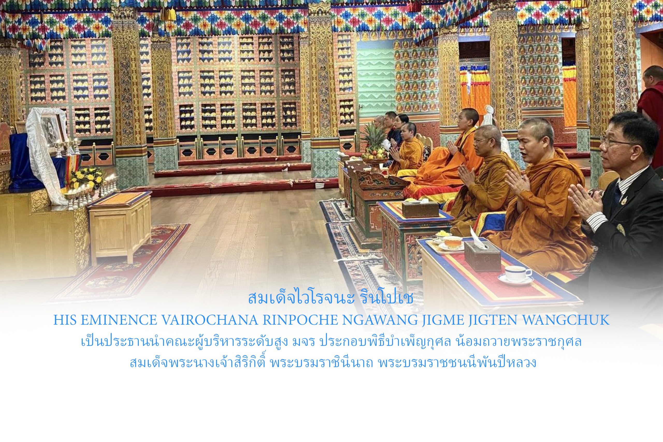 สมเด็จไวโรจนะ รินโปเช His Eminence Vairochana Rinpoche Ngawang Jigme Jigten Wangchuk เป็นประธานนำคณะผู้บริหารระดับสูง มจร ประกอบพิธีบำเพ็ญกุศล น้อมถวายพระราชกุศล สมเด็จพระนางเจ้าสิริกิติ์ พระบรมราชินีนาถ พระบรมราชชนนีพันปีหลวง