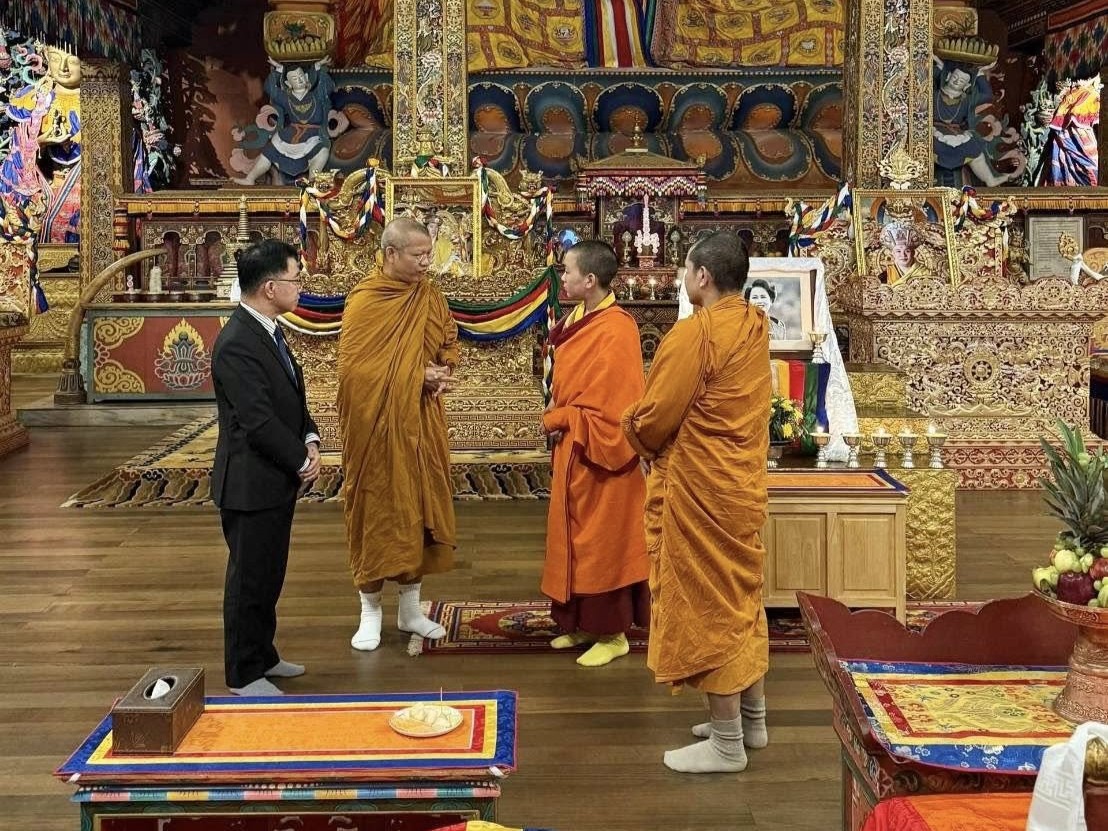 วันอาทิตย์ที่ ๒ พฤศจิกายน พ.ศ.๒๕๖๘ เวลา ๑๖.๐๐ น. คณะผู้บริหารระดับสูงของมหาวิทยาลัยมหาจุฬาลงกรณราชวิทยาลัย ประกอบด้วย พระปัญญาวัชรบัณฑิต รองอธิการบดีฝ่ายวิชาการ พระสิทธิวัชรบัณฑิต รองอธิการบดีฝ่ายกิจการต่างประเทศ รองศาสตราจารย์ ดร.สุรพล สุยะพรหม รองอธิการบดีฝ่ายกิจการทั่วไป และพระสมุห์สิริวรรณะ สิริวณฺโณ ผู้อำนวยการกองวิเทศสัมพันธ์ เข้าเฝ้า สมเด็จไวโรจนะ รินโปเช His Eminence Vairochana Rinpoche Ngawang Jigme Jigten Wangchuk ณ พระอารามหลวง นครทิมพู