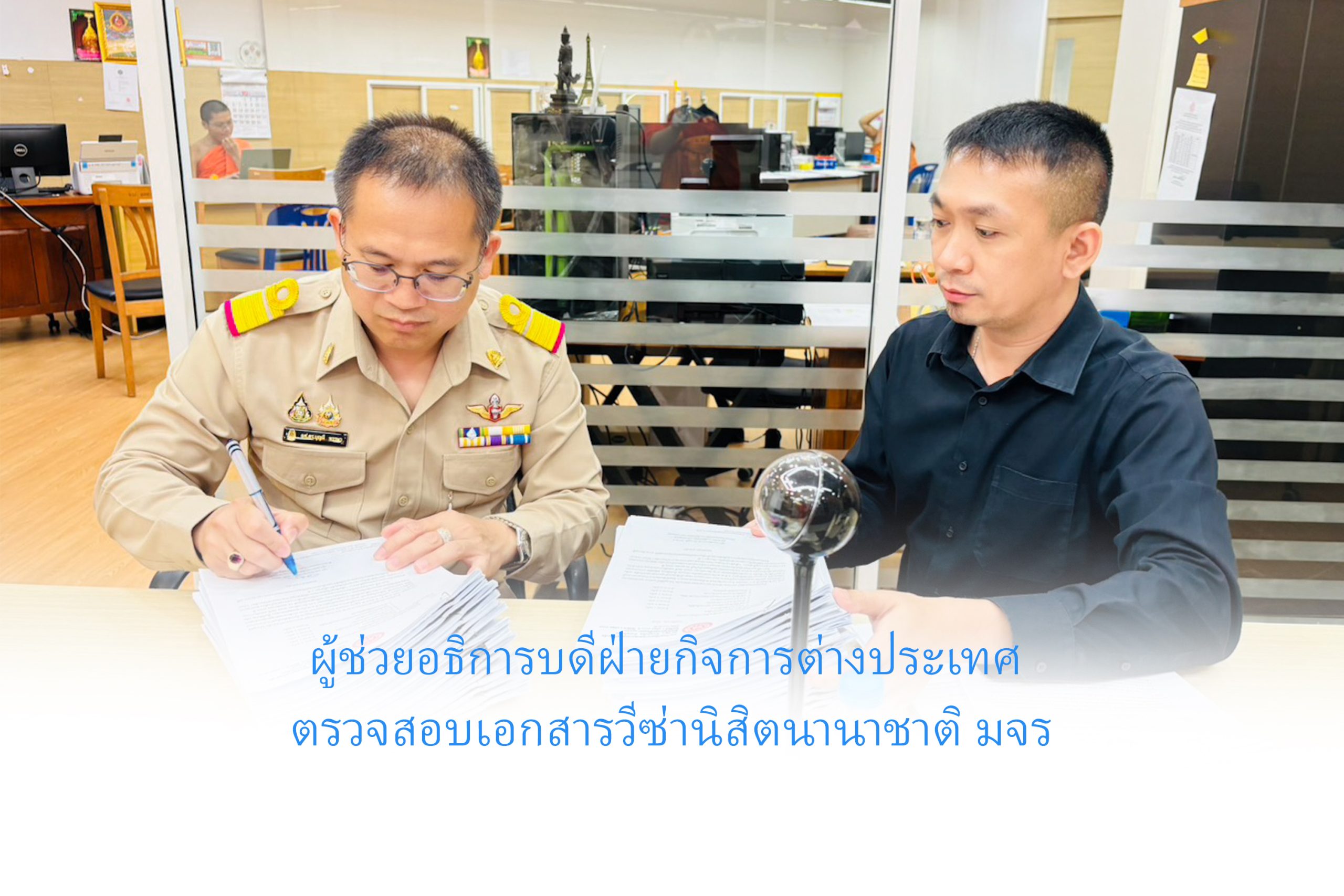 วันจันทร์ที่ ๓ พฤศจิกายน พ.ศ. ๒๕๖๘ เวลา ๑๒.๓๐ น. ผู้ช่วยศาสตราจารย์ ดร.บุญมี พรรษา ผู้ช่วยอธิการบดีฝ่ายกิจการต่างประเทศ ปฏิบัติหน้าที่แทนรองอธิการบดีฝ่ายกิจการต่างประเทศ มหาวิทยาลัยมหาจุฬาลงกรณราชวิทยาลัย ตรวจสอบเอกสารวีซ่านิสิตนานาชาติ มจร ก่อนจะลงนามรับรอง ณ สำนักงานกองวิเทศสัมพันธ์ มจร พระนครศรีอยุธยา