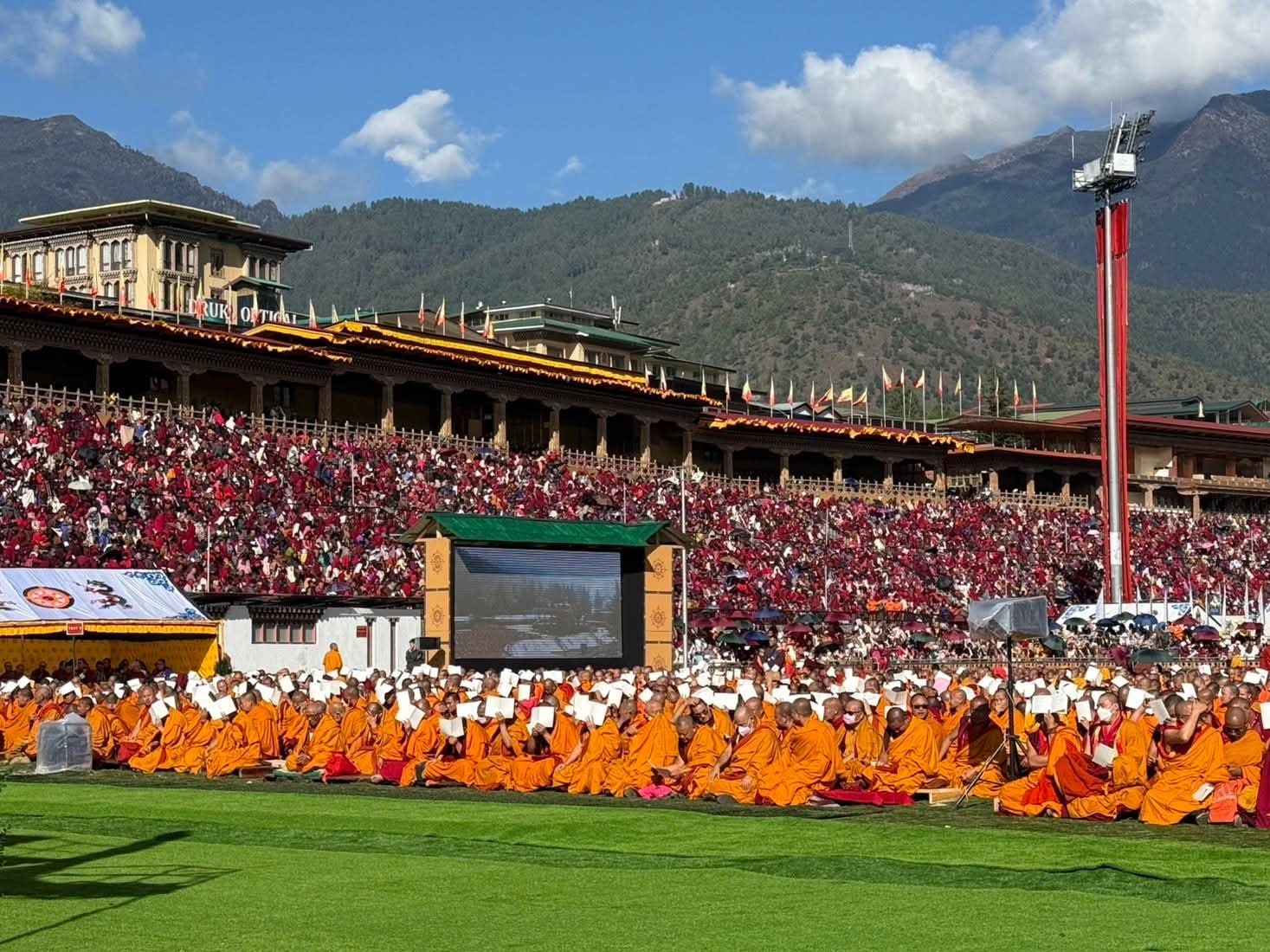 4th November 2025: His Majesty the King, His Majesty the Fourth Druk Gyalpo, Her Majesty the Gyaltsuen, and members of the Royal Family graced the opening of the Global Peace Prayer at Thimphu Changlimithang today.