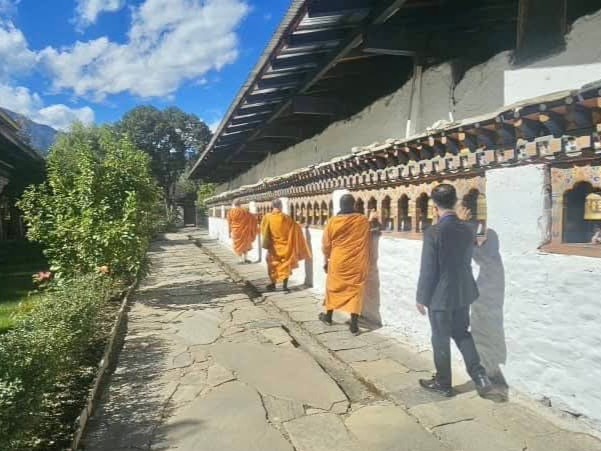 สมเด็จไวโรจนะ รินโปเช His Eminence Vairochana Rinpoche Ngawang Jigme Jigten Wangchuk เมตตาบัญชาให้ Honourable Mr. Tenzin,a Judge and Chief Administrator of Bhutan Alternaitve Dispute Resolution Centre ข้าราชการระดับสูงแห่งกรมพิธีการทูต กระทรวงการต่างประเทศ ราชอาณาจักรภูฏาน นำคณะผู้บริหารระดับสูง มจร ถวายสักการะพระพุทธปฏิมากรและสิ่งศักดิ์สิทธิ์ในพระนครทิมพู และนครพาโร