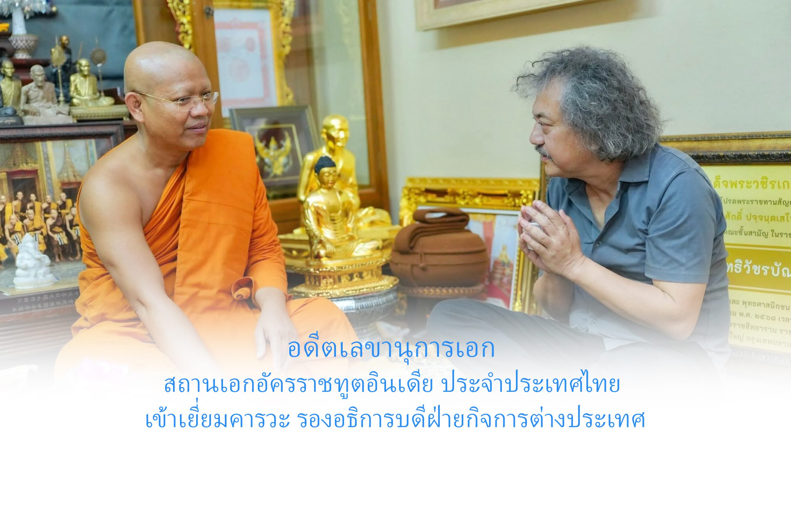วันพุธที่ ๕ พฤศจิกายน ๒๕๖๘ เวลา ๑๔.๐๐ น. Mr.K.Ashok Wangdi อดีตเลขานุการเอก สถานเอกอัครราชทูตอินเดีย ประจำประเทศไทย เข้าเยี่ยมคารวะ พระสิทธิวัชรบัณฑิต รองอธิการบดีฝ่ายกิจการต่างประเทศ ผู้อำนวยการศูนย์อินเดียศึกษา มจร ณ ห้องรับรองอาคันตุกะ คณะ ๔ วัดราชสิทธาราม ราชวรวิหาร กรุงเทพมหานคร