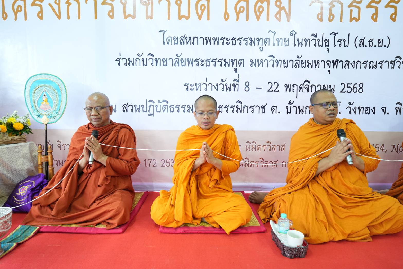 โครงการฯ กิจกรรมดังกล่าว จัดขึ้นระหว่างวันที่ ๘ – ๒๒ พฤศจิกายน ๒๕๖๘ ณ สวนปฏิบัติธรรม สวนธรรมิกราช ตำบลบ้านกลาง อำเภอวังทอง จังหวัดพิษณุโลก ดำเนินการโดยวิทยาลัยพระธรรมทูต มหาวิทยาลัยมหาจุฬาลงกรณราชวิทยาลัย ร่วมกับสหภาพพระธรรมทูตไทยในทวีปยุโรป