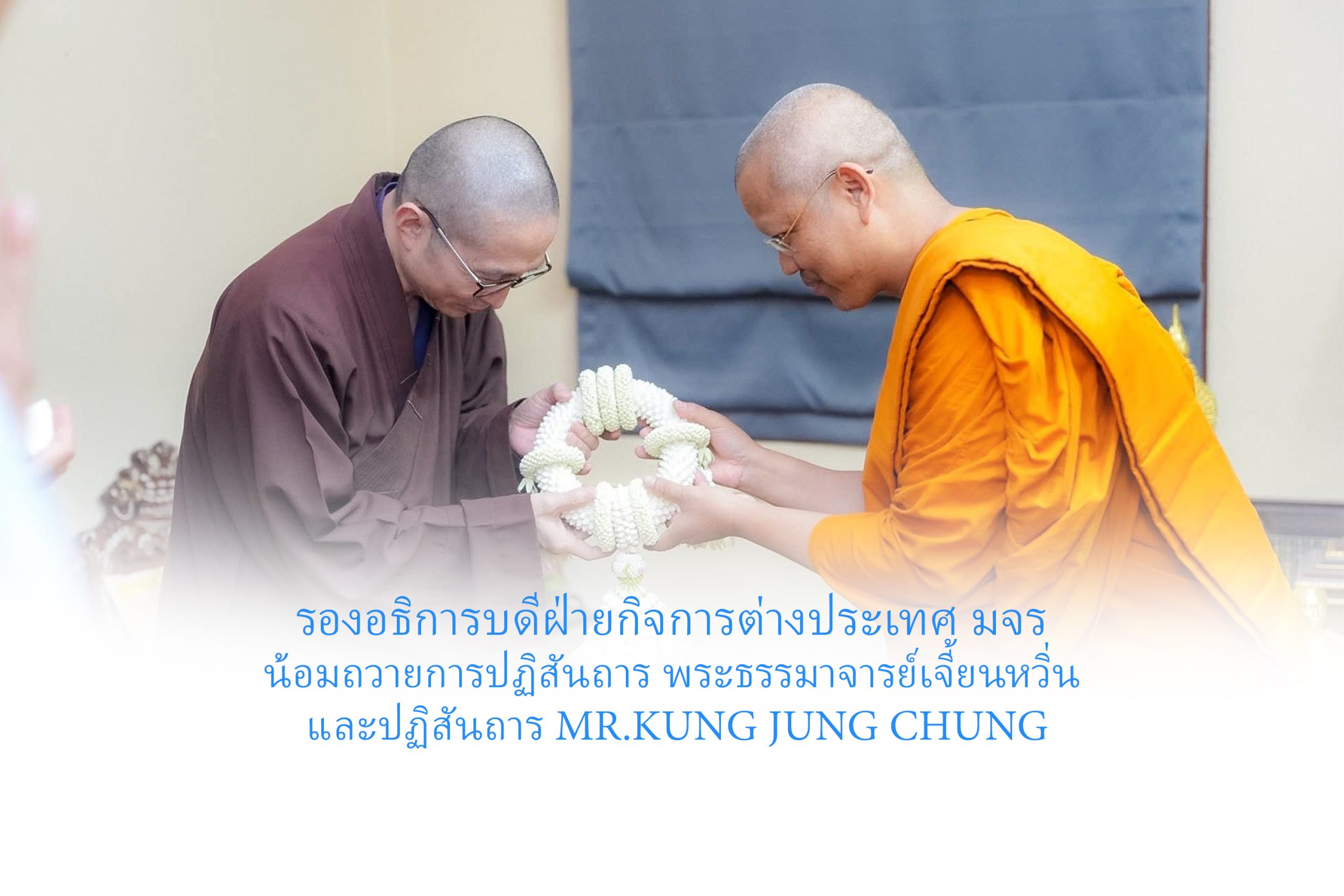 วันอาทิตย์ที่ ๙ พฤศจิกายน พ.ศ.๒๕๖๘ เวลา ๑๕.๓๐ น. พระสิทธิวัชรบัณฑิต ผู้ช่วยเจ้าอาวาสวัดราชสิทธารามราชวรวิหาร รองอธิการบดีฝ่ายกิจการต่างประเทศ มจร ถวายการปฏิสันถาร พระธรรมาจารย์เจี้ยนหวิ่น เจ้าอาวาสวัดจงไถซาน กรุงเทพมหานคร พร้อมด้วย Mr.Kung Jung Chung, The Chairman of Greatand Electronics Taiwan Lit. ณ ห้องรับรองอาคันตุกะ คณะ ๔ วัดราชสิทธารามราชวรวิหาร กรุงเทพมหานคร