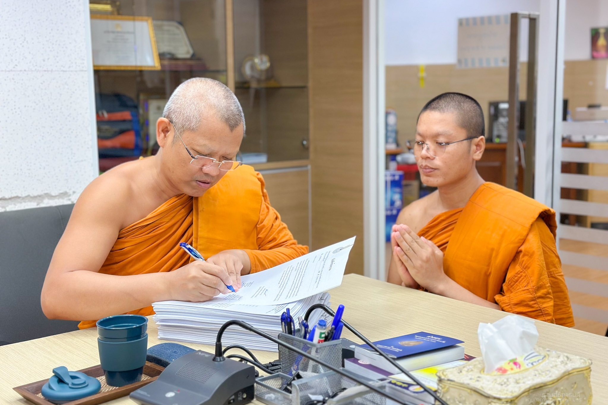 วันอังคารที่ ๒ ธันวาคม พ.ศ.๒๕๖๘ เวลา ๐๙.๓๐ น. พระสิทธิวัชรบัณฑิต รองอธิการบดีฝ่ายกิจการต่างประเทศ มหาวิทยาลัยมหาจุฬาลงกรณราชวิทยาลัย ตรวจสอบเอกสารวีซ่านิสิตนานาชาติ มจร ก่อนจะลงนามรับรอง ณ สำนักงานวิทยาลัยพระธรรมทูตและกองวิเทศสัมพันธ์ มจร พระนครศรีอยุธยา