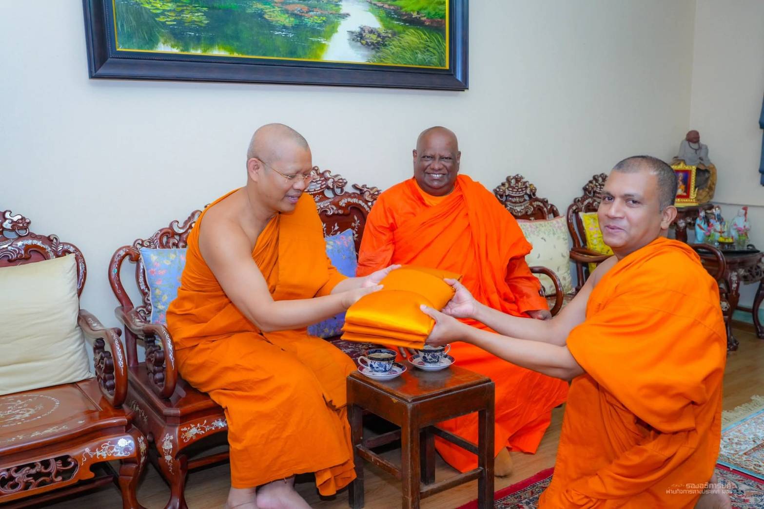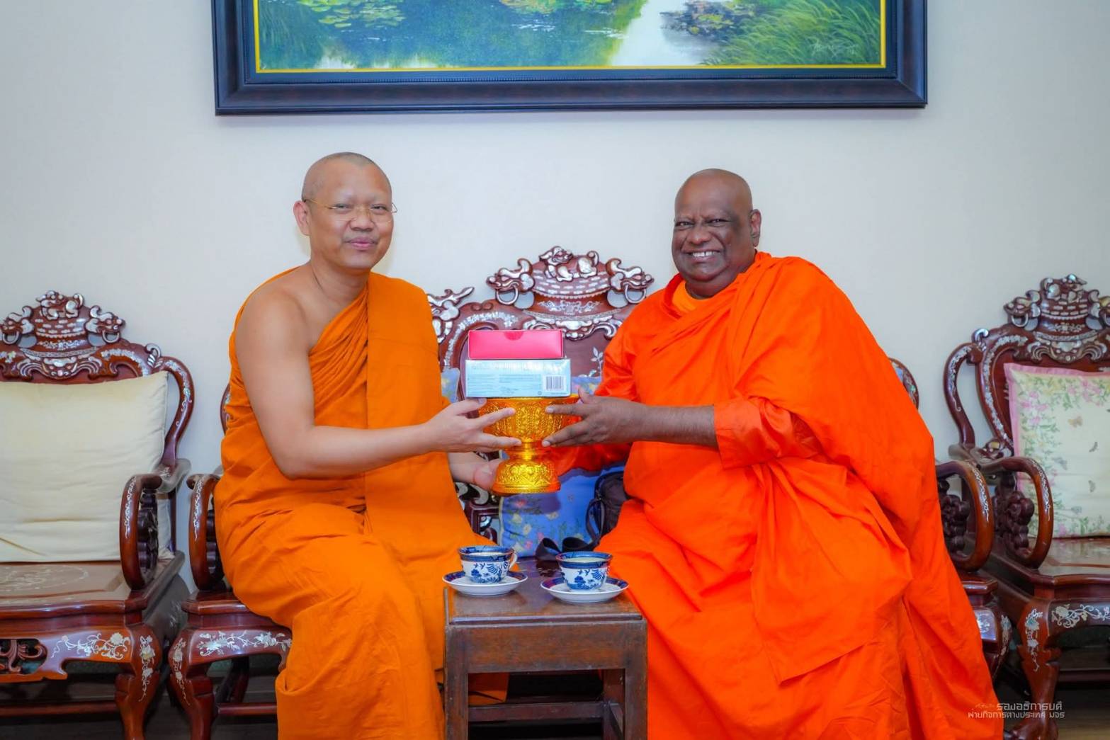 โอกาสนี้ รองอธิการบดีฝ่ายกิจการต่างประเทศ ได้ถวายของที่ระลึกและกล่าวขอบคุณ Most Venerable Dr. Bodagama Chandima Nayaka Thera ที่เมตตาและให้เกียรติเดินทางมาเยือน มจร และเข้าเยี่ยม รองอธิการบดีฝ่ายกิจการต่างประเทศ พร้อมกับอาราธนาท่าน เป็นวิทยากรบรรยายหลักสูตรประกาศนียบัตรพระธรรมทูต ภาคภาษาอังกฤษ วิทยาลัยพระธรรมทูต มจร