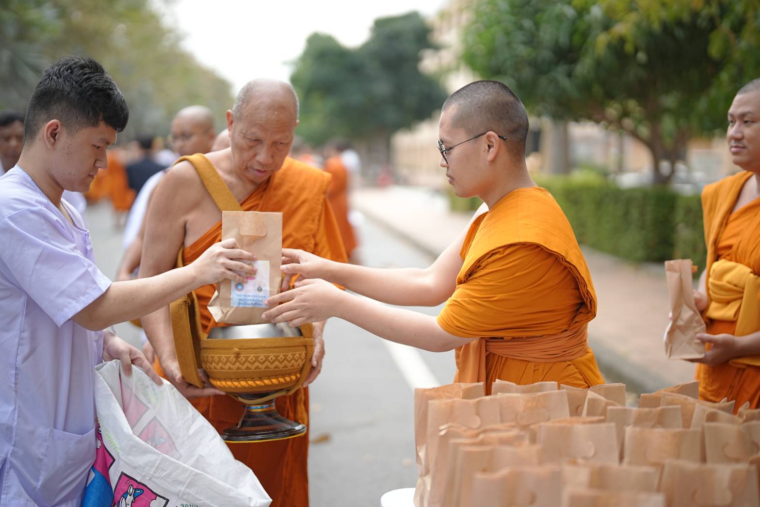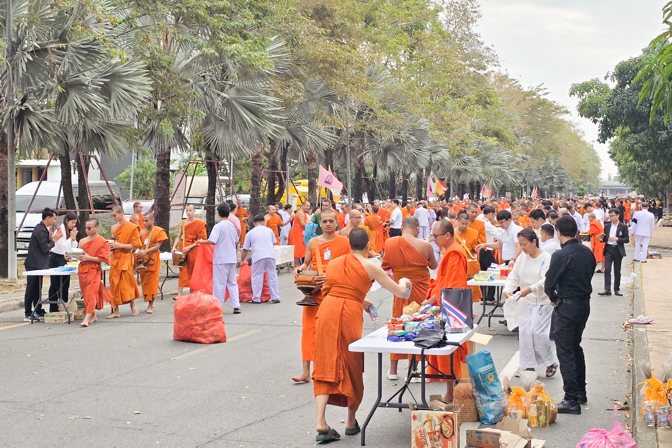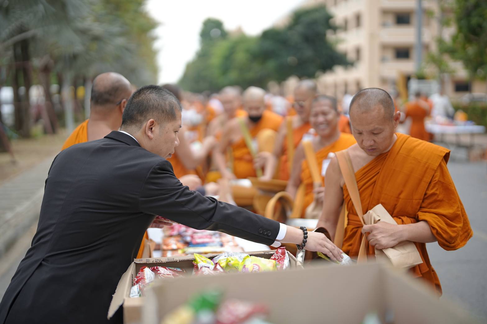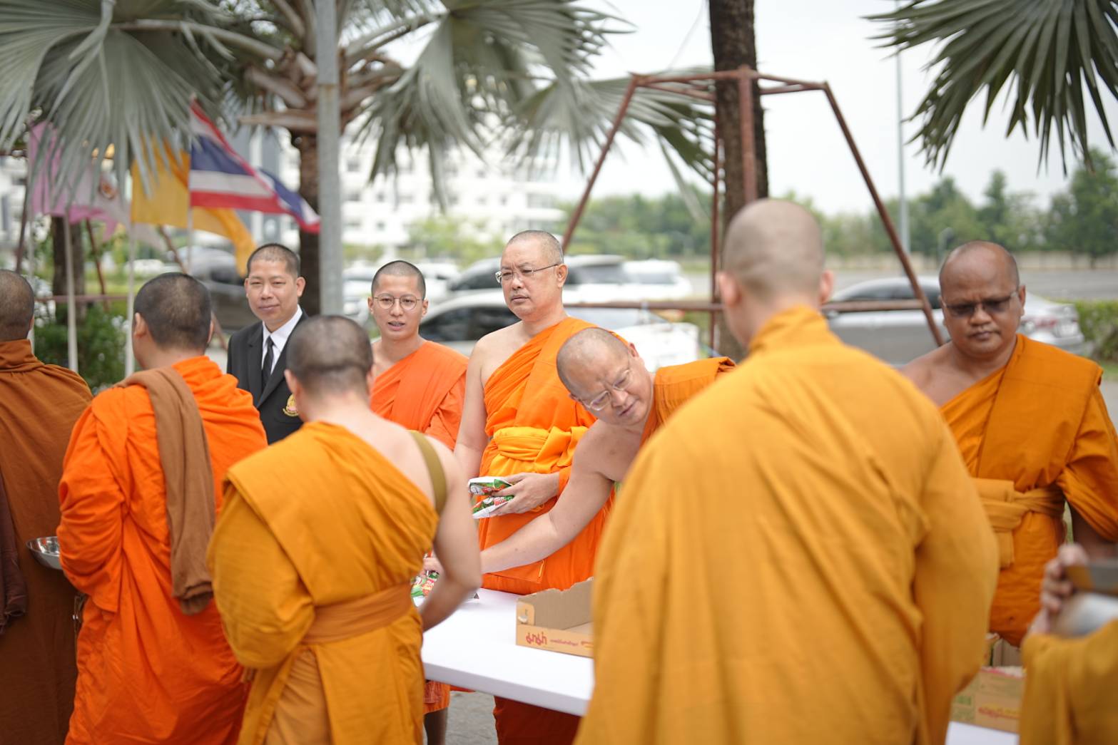 วันศุกร์ที่ ๑๒ ธันวาคม พ.ศ. ๒๕๖๘ เวลา ๐๘.๓๐ น. พระสิทธิวัชบัณฑิต, ผศ.ดร. รองอธิการบดีฝ่ายกิจการต่างประเทศ มอบหมายให้ ผู้ช่วยศาสตราจารย์ ดร.บุญมี พรรษา ผู้ช่วยอธิการบดีฝ่ายกิจการต่างประเทศ ผู้บริหาร คณาจารย์ เจ้าหน้าที่ วิทยาลัยพระธรรมทูต กองวิเทศสัมพันธ์ ศูนย์อินเดียศึกษา และศูนย์อาเซียนศึกษา ร่วมพิธีบำเพ็ญกุศลทำบุญตักบาตรข้าวสารอาหารแห้ง แด่ พระนิสิตปฏิบัติวิปัสสนากรรมฐาน จำนวน ๑,๔๐๐ รูป ถวายพระราชกุศล แด่ สมเด็จพระนางเจ้าสิริกิติ์ พระบรมราชินีนาถ พระบรมราชชนนีพันปีหลวง ณ มหาวิทยาลัยมหาจุฬาลงกรณราชวิทยาลัย อำเภอวังน้อย จังหวัดพระนครศรีอยุธยา