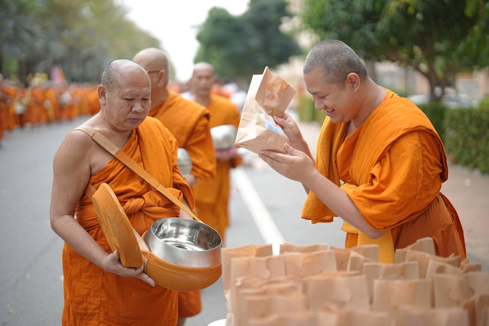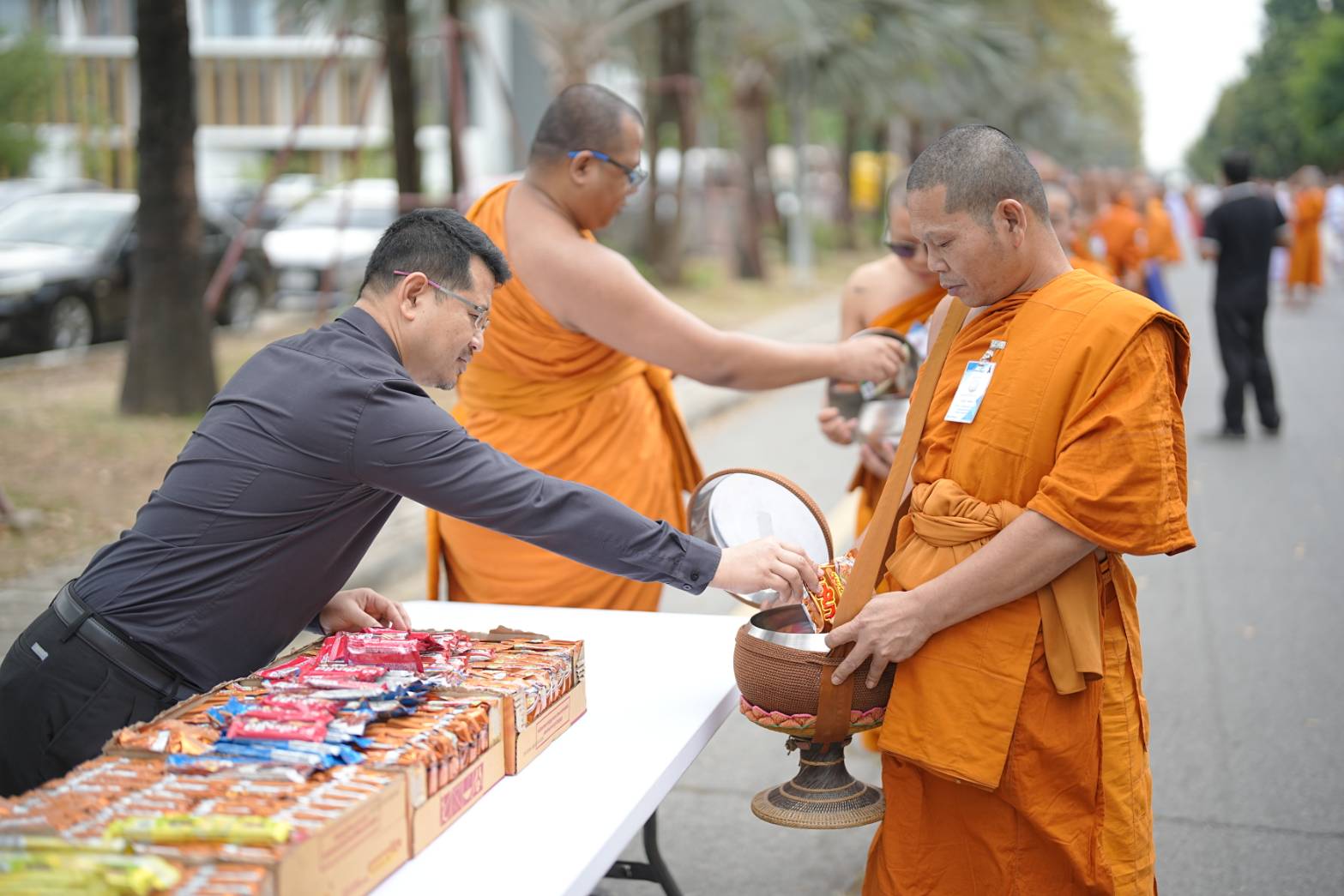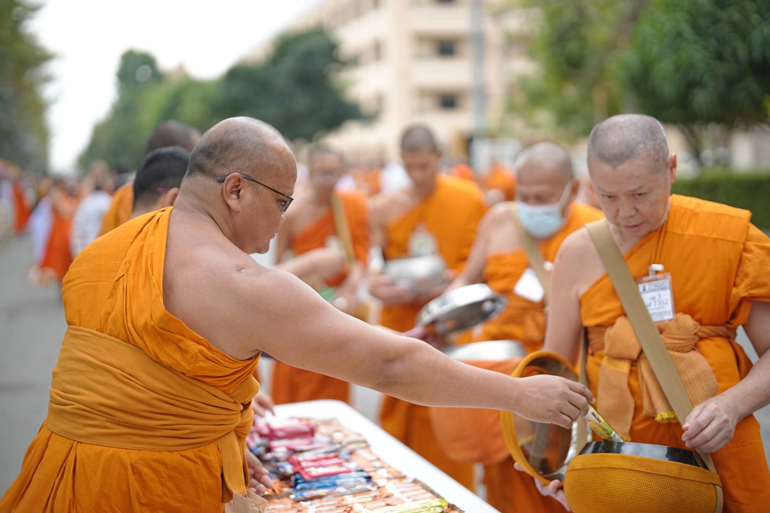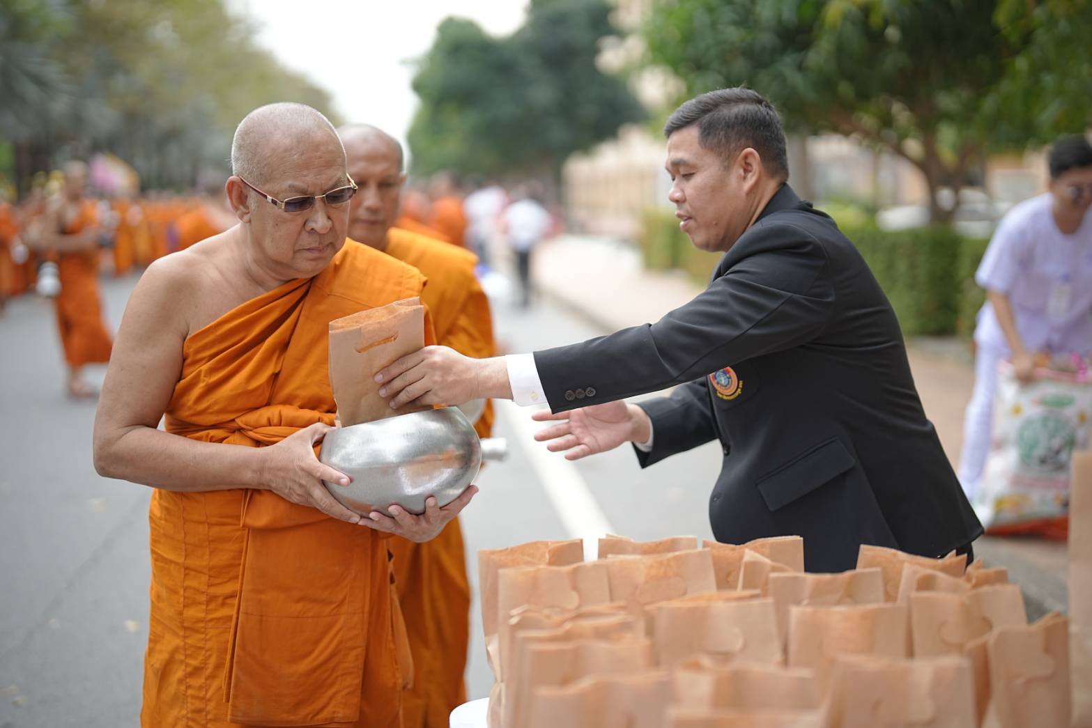 วันศุกร์ที่ ๑๒ ธันวาคม พ.ศ. ๒๕๖๘ เวลา ๐๘.๓๐ น. พระสิทธิวัชบัณฑิต, ผศ.ดร. รองอธิการบดีฝ่ายกิจการต่างประเทศ มอบหมายให้ ผู้ช่วยศาสตราจารย์ ดร.บุญมี พรรษา ผู้ช่วยอธิการบดีฝ่ายกิจการต่างประเทศ ผู้บริหาร คณาจารย์ เจ้าหน้าที่ วิทยาลัยพระธรรมทูต กองวิเทศสัมพันธ์ ศูนย์อินเดียศึกษา และศูนย์อาเซียนศึกษา ร่วมพิธีบำเพ็ญกุศลทำบุญตักบาตรข้าวสารอาหารแห้ง แด่ พระนิสิตปฏิบัติวิปัสสนากรรมฐาน จำนวน ๑,๔๐๐ รูป ถวายพระราชกุศล แด่ สมเด็จพระนางเจ้าสิริกิติ์ พระบรมราชินีนาถ พระบรมราชชนนีพันปีหลวง ณ มหาวิทยาลัยมหาจุฬาลงกรณราชวิทยาลัย อำเภอวังน้อย จังหวัดพระนครศรีอยุธยา