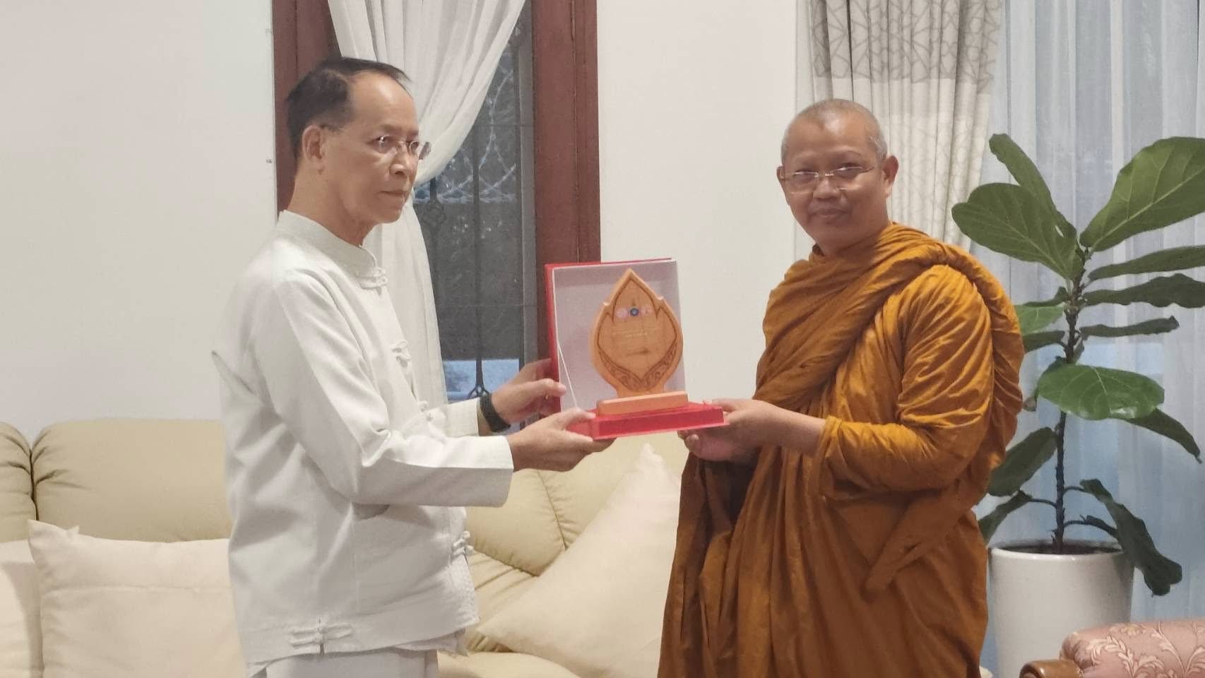 วันเสาร์ที่ ๑๓ ธันวาคม พ.ศ.๒๕๖๘ เวลา ๑๖.๓๐ น. พระสิทธิวัชรบัณฑิต รองอธิการบดีฝ่ายกิจการต่างประเทศ มจร ในนามพระพรหมวัชรธีราจารย์ อธิการบดี มอบโล่รางวัล ธรรมทูตคฤหัสถ์กิตติมศักดิ์และเกียรติบัตรแก่ Dr.Sai Mawk Kham อดีตรองประธานาธิบดี สาธารณรัฐแห่งสหภาพเมียนมา และภริยา ณ นครย่างกุ้ง ประเทศสาธารณรัฐแห่งสหภาพเมียนมา (The Republic of the Union of Myanmar)