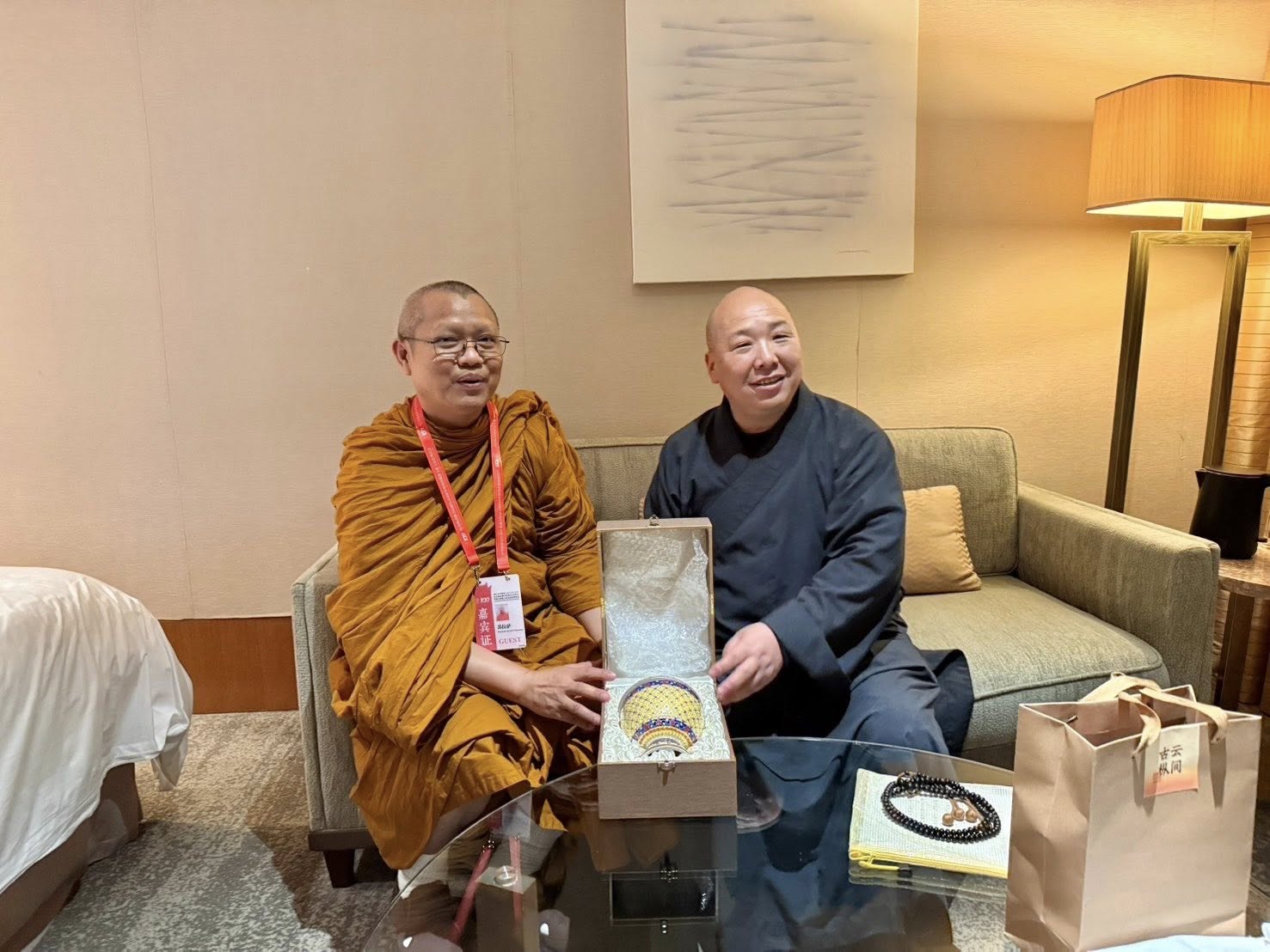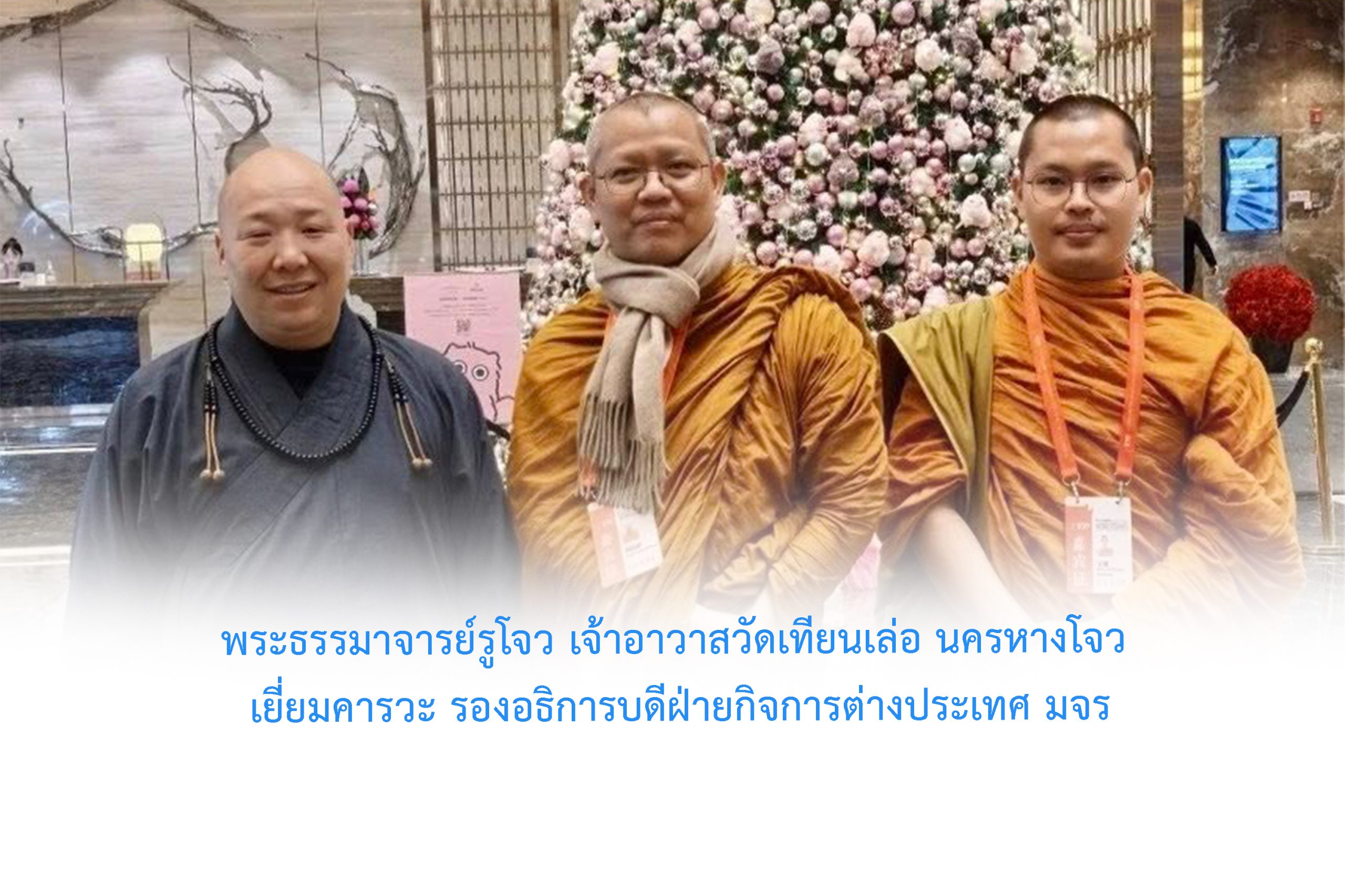 พระธรรมาจารย์รูโจว เจ้าอาวาสวัดเทียนเล่อ นครหางโจว เยี่ยมคารวะ รองอธิการบดีฝ่ายกิจการต่างประเทศ มจร