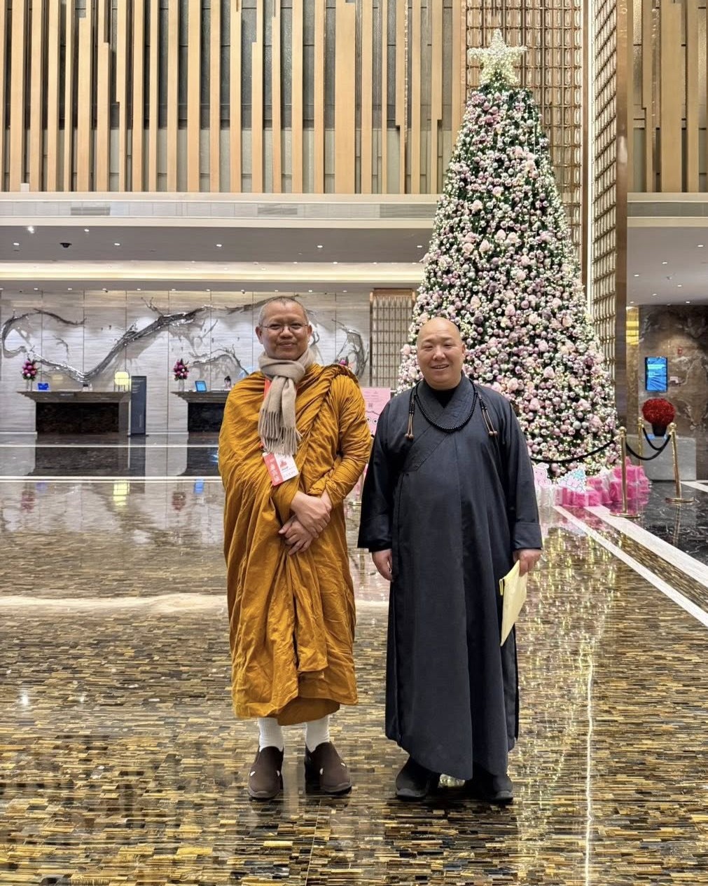 วันพุธที่ ๑๗ ธันวาคม พ.ศ.๒๕๖๘ เวลา ๒๑.๐๐ น. พระสิทธิวัชรบัณฑิต ผู้ช่วยเจ้าอาวาสวัดราชสิทธาราม รองอธิการบดีฝ่ายกิจการต่างประเทศ ประธานศูนย์มหายานศึกษา มจร ถวายการปฏิสันถาร พระธรรมาจารย์รูโจว (如洲法師) เจ้าอาวาสวัดเทียนเล่อ รองประธานสมาคมพระพุทธศาสนาเขตเซียวซาน นครหางโจว ณ ห้องรับรอง เมืองเซียะเหมิน