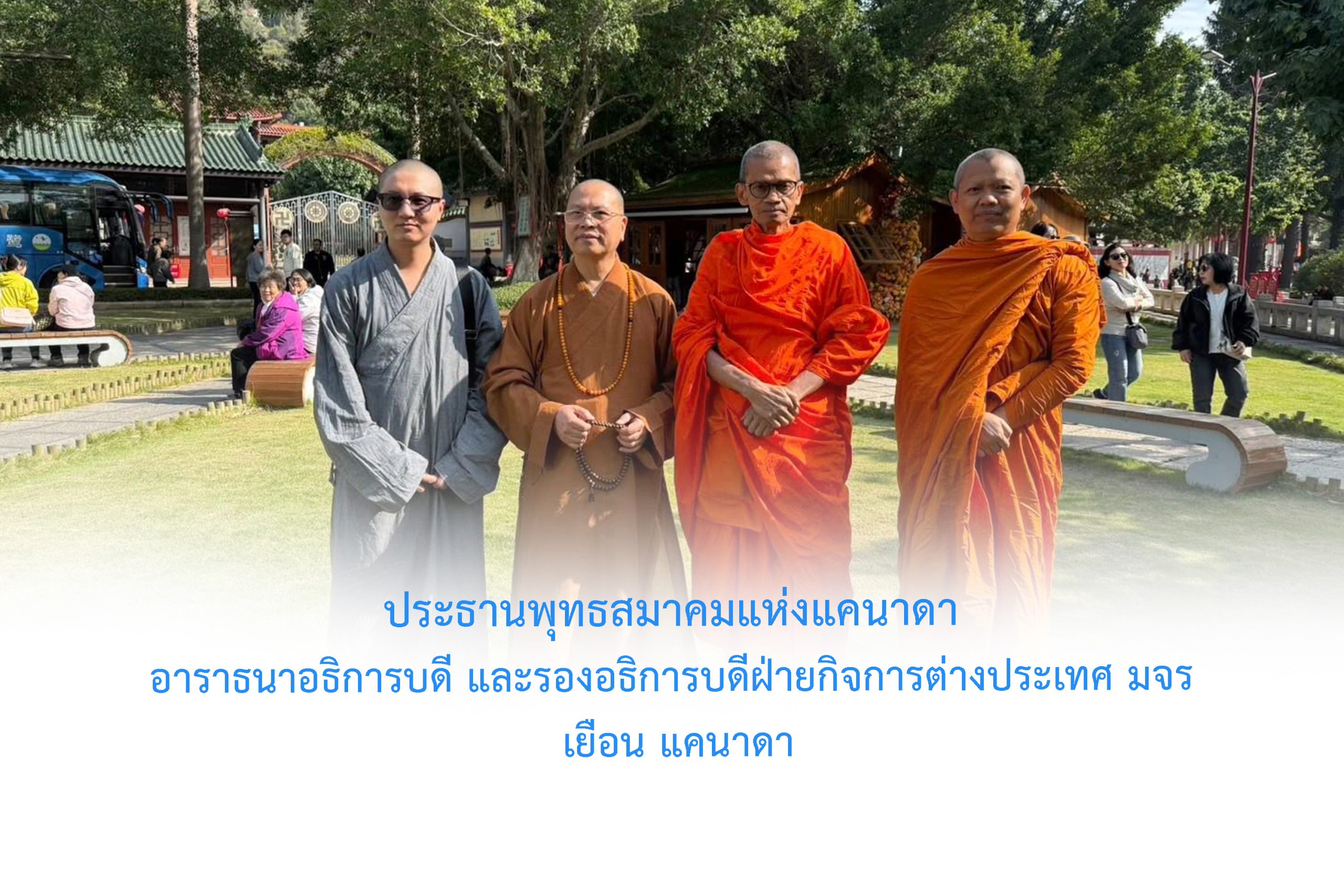 วันพฤหัสบดีที่ ๑๘ ธันวาคม พ.ศ.๒๕๖๘ เวลา ๑๐.๕๐ น. Most Venerable Dayi Shi, The Buddhist Association of Canada อาราธนา พระพรหมวัชรธีราจารย์ อธิการบดี และ พระสิทธิวัชรบัณฑิต รองอธิการบดีฝ่ายกิจการต่างประเทศ มจร เดินทางเยือนพุทธสมาคมแห่งแคนาดา (The Buddhist Association of Canada) เพื่อเจริญสัมพันธไมตรี ระหว่าง มจร และ พุทธสมาคมแห่งคานาดา