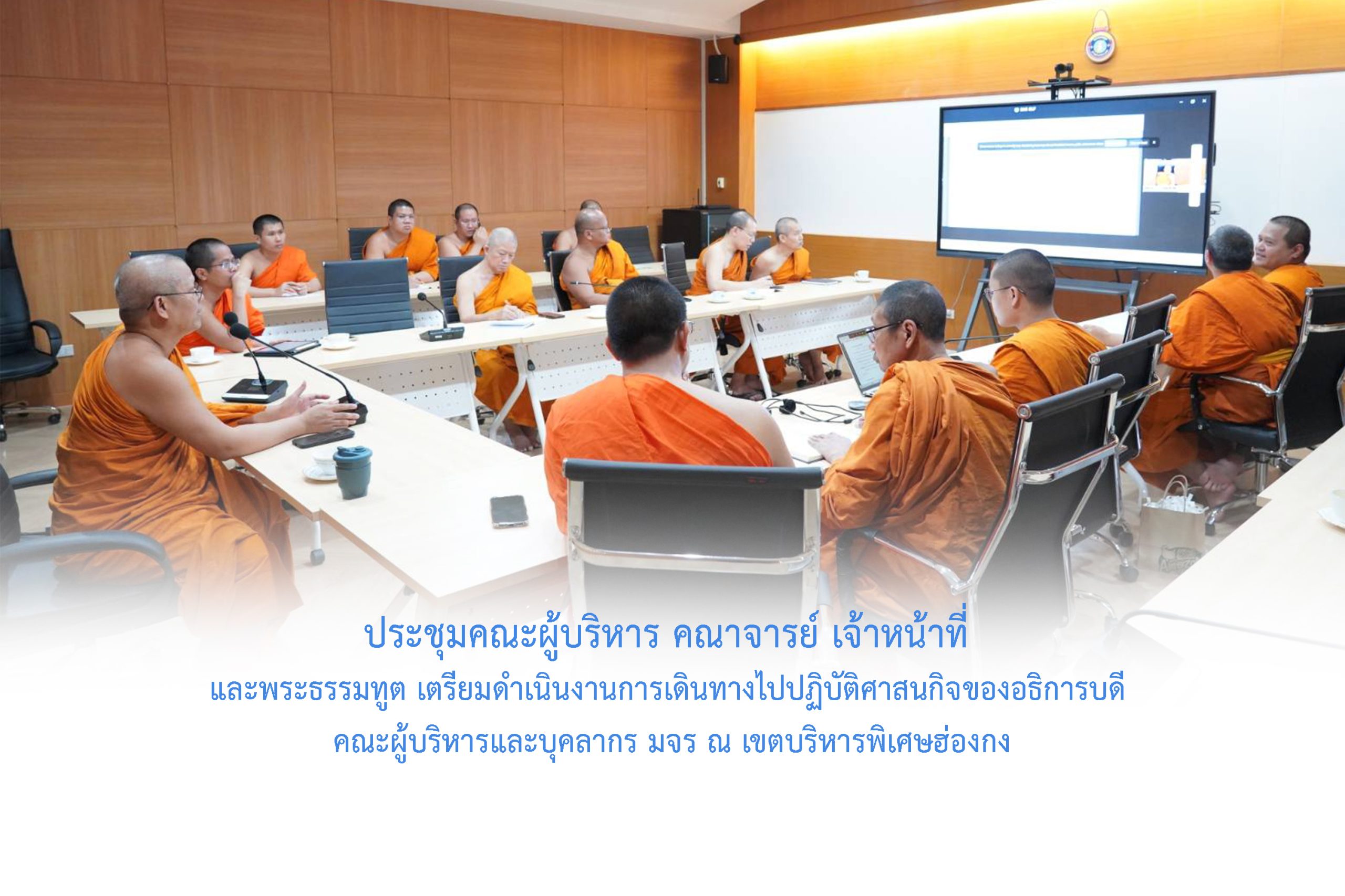 วันศุกร์ที่ ๒๖ ธันวาคม พ.ศ.๒๕๖๘ เวลา ๑๓.๐๐ น. พระสิทธิวัชรบัณฑิต รองอธิการบดีฝ่ายกิจการต่างประเทศ ประธานคณะกรรมการดำเนินงานการเดินทางไปปฏิบัติศาสนกิจของอธิการบดี คณะผู้บริหารและบุคลากร มจร ณ สถาบันสมทบ มจร เขตบริหารพิเศษฮ่องกง ระหว่างวันที่ ๕-๗ มกราคม ๒๕๖๙ ณ ห้องประชุมบัณฑิตศึกษา วิทยาลัยพระธรรมทูต มจร พระนครศรีอยุธยา