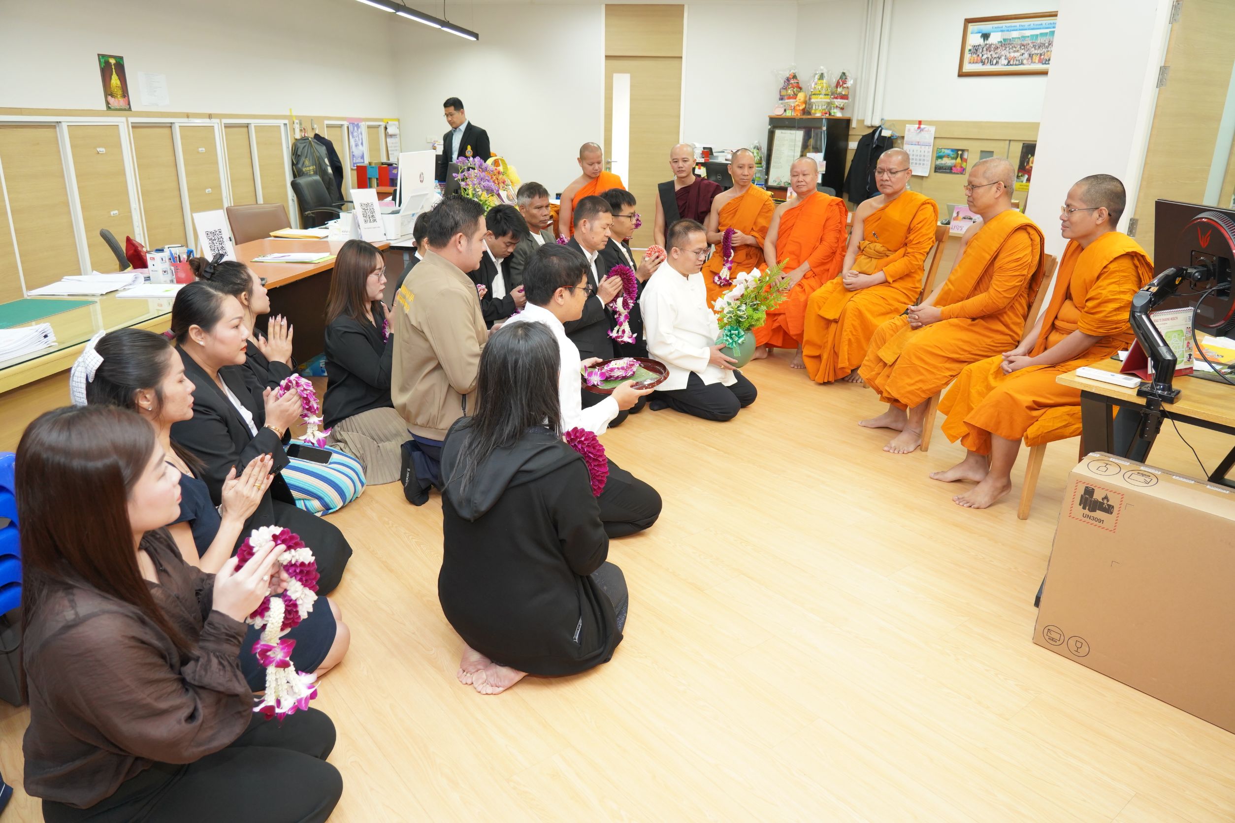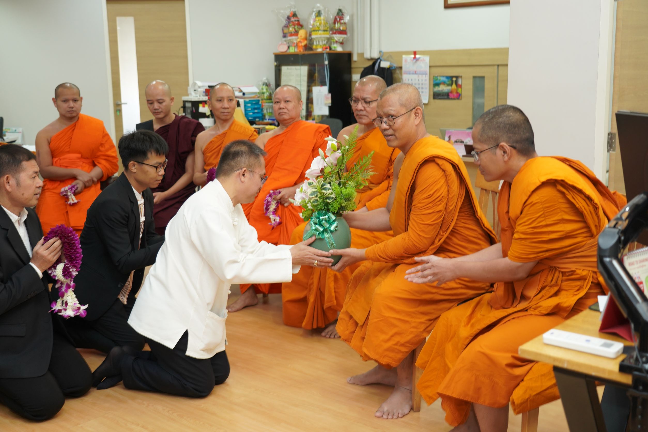 วันศุกร์ที่ ๙ มกราคม พ.ศ.๒๕๖๙ เวลา ๑๐.๔๕ น. พระสิทธิวัชรบัณฑิต รองอธิการบดีฝ่ายกิจการต่างประเทศ รับการถวายสักการะจาก รองศาสตราจารย์ ดร. บุญมี พรรษา และคณาจารย์ภาควิชาหลักสูตรและการสอน คณะครุศาสตร์ มจร เนื่องในมงคลดิถีอภิลักขิตสมัย เถลิงศกปีใหม่ ๒๕๖๙ ณ สำนักงานกองวิเทศสัมพันธ์ มจร พระนครศรีอยุธยา