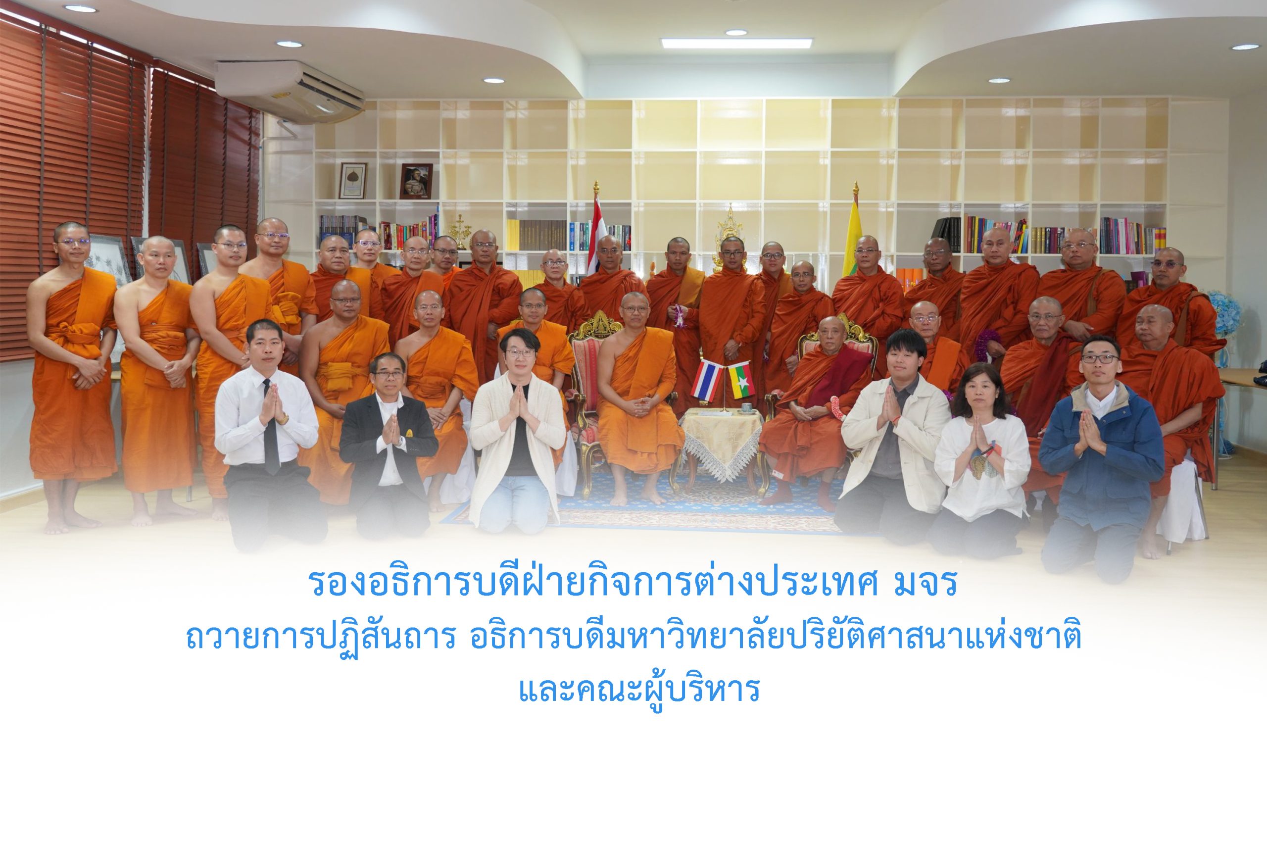 Most Venerable Dr.Bhaddanta Kumara อธิการบดีมหาวิทยาลัยปริยัติศาสนาแห่งชาติ มหานครย่างกุ้ง (The Rector of State Pariyatti Sasana University,Yangon -Myanmar) และคณะผู้บริหาร เดินทางเยือน มจร อย่างเป็นทางการ โดย พระพรหมวัชรธีราจารย์ อธิการบดี บัญชาให้ รองอธิการบดีฝ่ายกิจการต่างประเทศ มจร ถวายการปฏิสันถาร พร้อมกับสนทนาแลกเปลี่ยนโครงการและกิจกรรมส่งเสริมการศึกษาและพระพุทธศาสนาร่วมกันในอนาคต