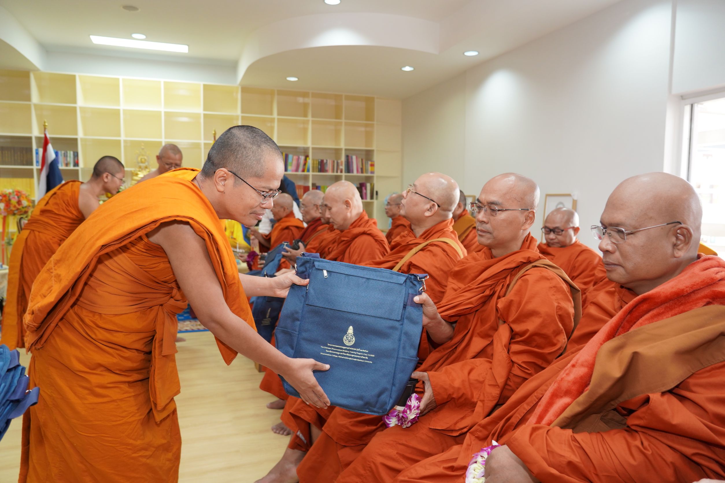 พร้อมกันนี้ รองอธิการบดีฝ่ายกิจการต่างประเทศ พร้อมด้วยทานบดีกัลยาณมิตรของ มจร จากไต้หวัน ผู้เป็นศิษยานุศิษย์ของ Most Venerable Shi Hsin Tao ถวายกัปปิยภัณฑ์เพื่อสนับสนุนกิจกรรมส่งเสริมการศึกษาแก่อธิการบดีและคณะผู้บริหารมหาวิทยาลัย