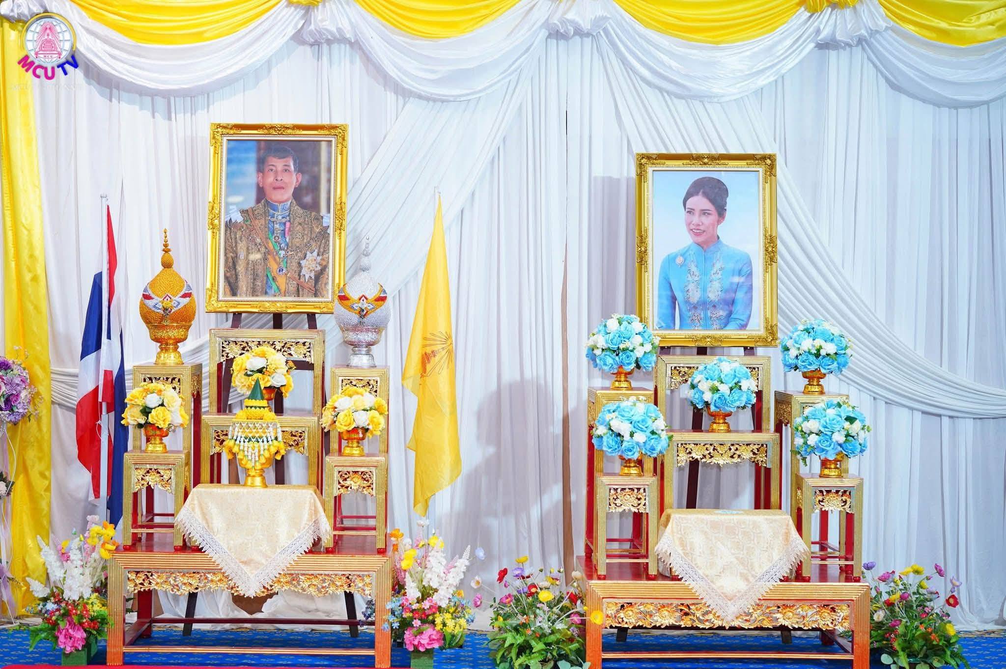 รศ.ดร.สุรพล สุยะพรหม รองอธิการบดีฝ่ายกิจการทั่วไป เปิดกรวยสักการะหน้าพระบรมฉายาลักษณ์ พระบาทสมเด็จพระเจ้าอยู่หัว และวางแจกันดอกไม้หน้าภาพถ่าย พลโทหญิงเจ้าคุณพระสินีนาถ พิลาสกัลยาณี