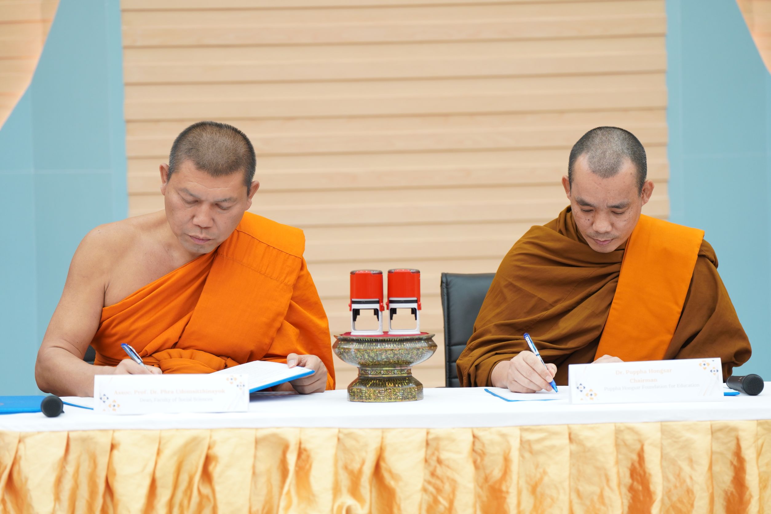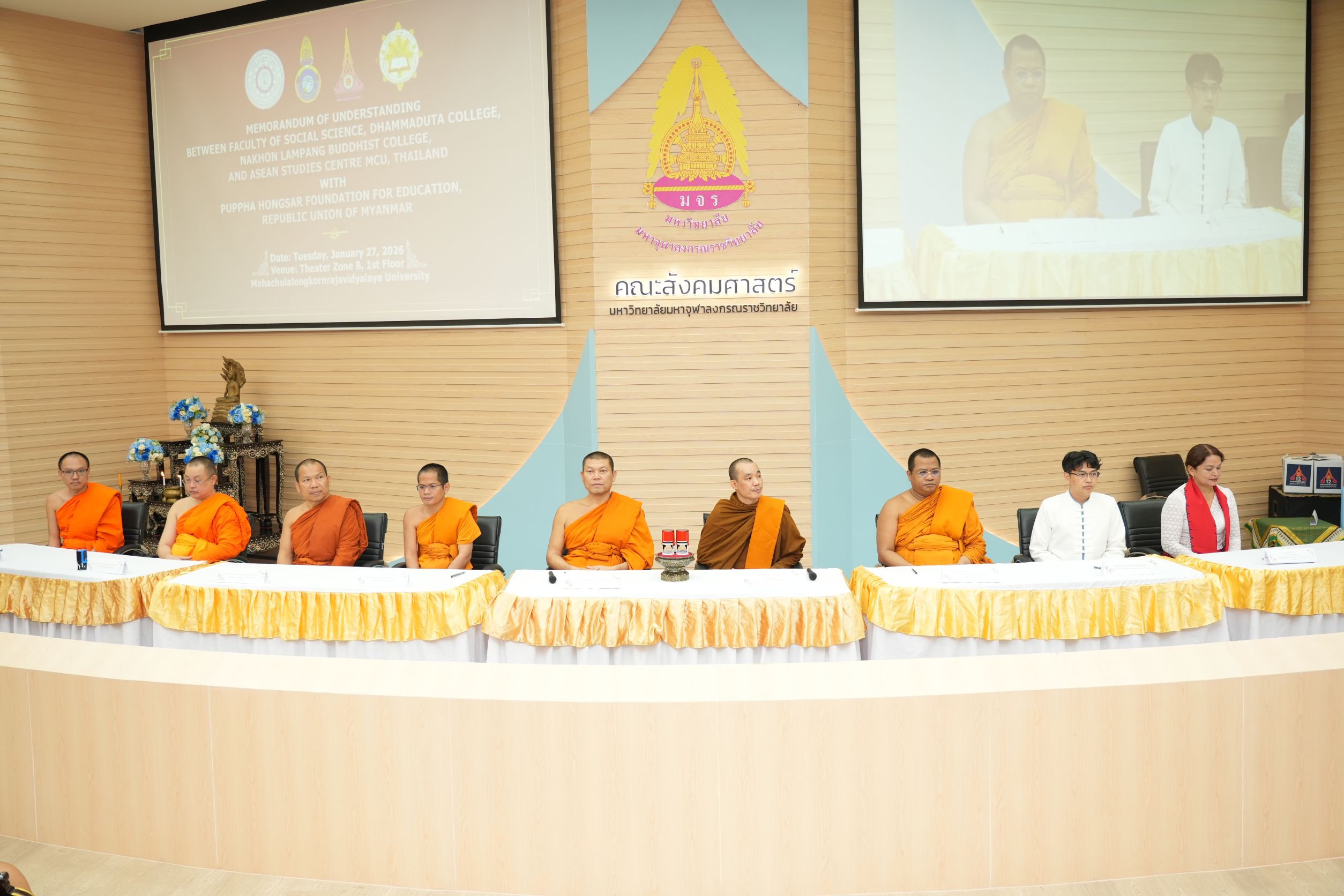 โอกาสนี้ ๑) พระอุดมสิทธินายก, รศ.ดร.คณบดีคณะสังคมศาสตร์ และ พระครูสังฆวิริยกิจ รองคณบดีคณะสังคมศาสตร์ ๒) พระครูสุตรัตนบัณฑิต, ดร. ผู้อำนวยการวิทยาลัยพระธรรมทูต และ พระมหาไพฑูรย์ ปนฺตนนฺโท รองผู้อำนวยการวิทยาลัยพระธรรมทูต ฝ่ายวิชาการ ๓) พระมหานพดล สุวณณเมธี ผู้อำนวยการวิทยาลัยสงฆ์นครลำปาง ๔) พระมหาจีรวัฒน์ กนฺตวณฺโณ, รศ.ดร. และ พระครูสุภัทรธรรมบัณฑิต ผู้อำนวยการส่วนบริหาร ศูนย์อาเซียนศึกษา ) Venerable Dr. Puppha Hongsar ประธานมูลนิธิปุปผะหงสา ได้ลงนาม MoU โดยมีวัตถุประสงค์สำคัญครอบคลุม ๓ ด้าน ได้แก่: