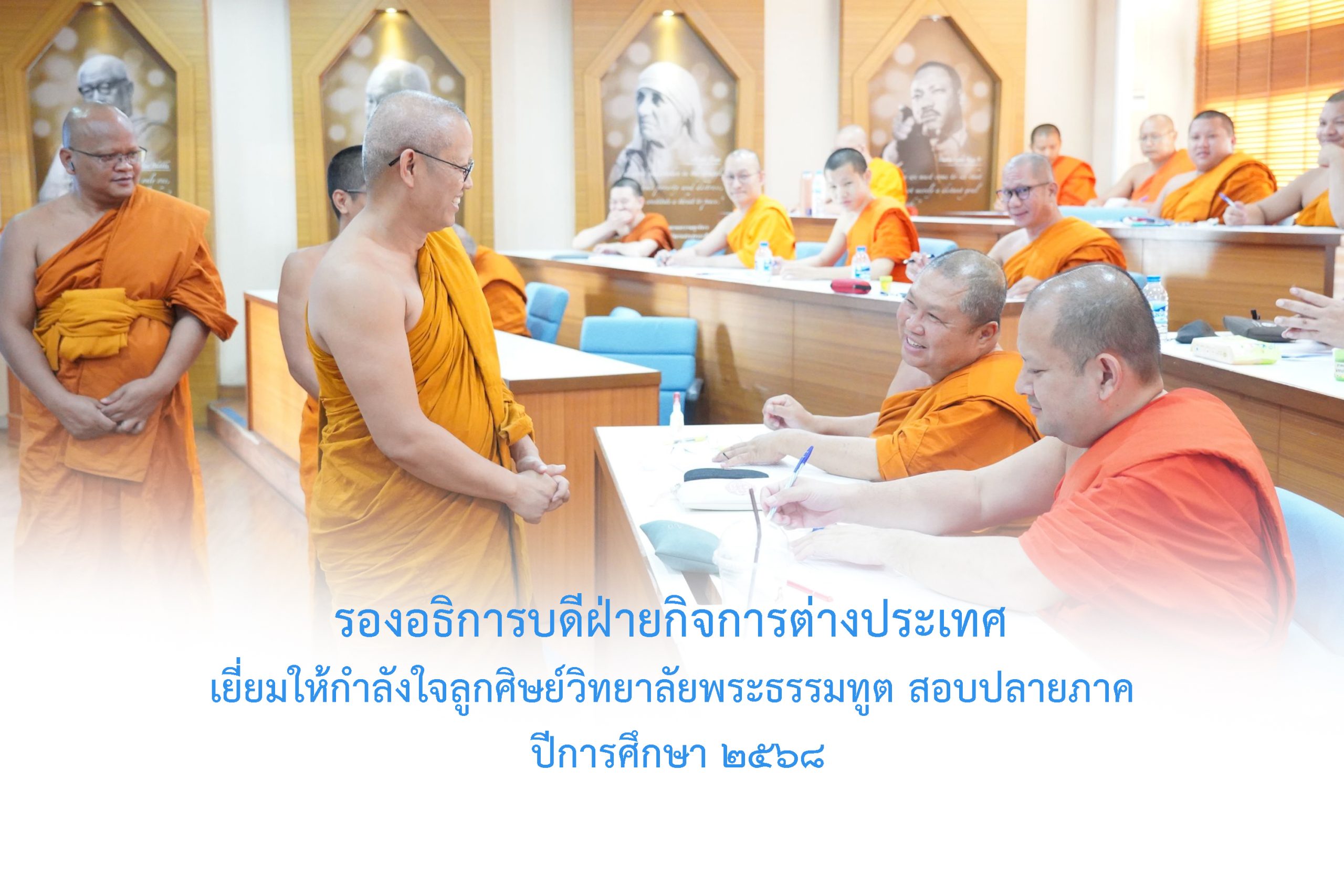 วันศุกร์ที่ ๒๐ กุมภาพันธ์ พ.ศ.๒๕๖๙ เวลา ๑๕.๐๐ น. พระสิทธิวัชรบัณฑิต รองอธิการบดีฝ่ายกิจการต่างประเทศ ประธานคณะกรรมการประจำวิทยาลัยพระธรรมทูต มจร และ พระครูสุตรัตนบัณฑิต ผู้อำนวยการวิทยาลัยพระธรรมทูต กล่าวให้โอวาทและให้กำลังใจ ลูกศิษย์วิทยาลัยพระธรรมทูต หลักสูตรประกาศนียบัตรพระธรรมทูต ที่กำลังสอบปลายภาค ปีการศึกษา ๒๕๖๘ ณ ห้องเรียนบัณฑิตศึกษา วิทยาลัยพระธรรมทูต มจร พระนครศรีอยุธยา ฯ
