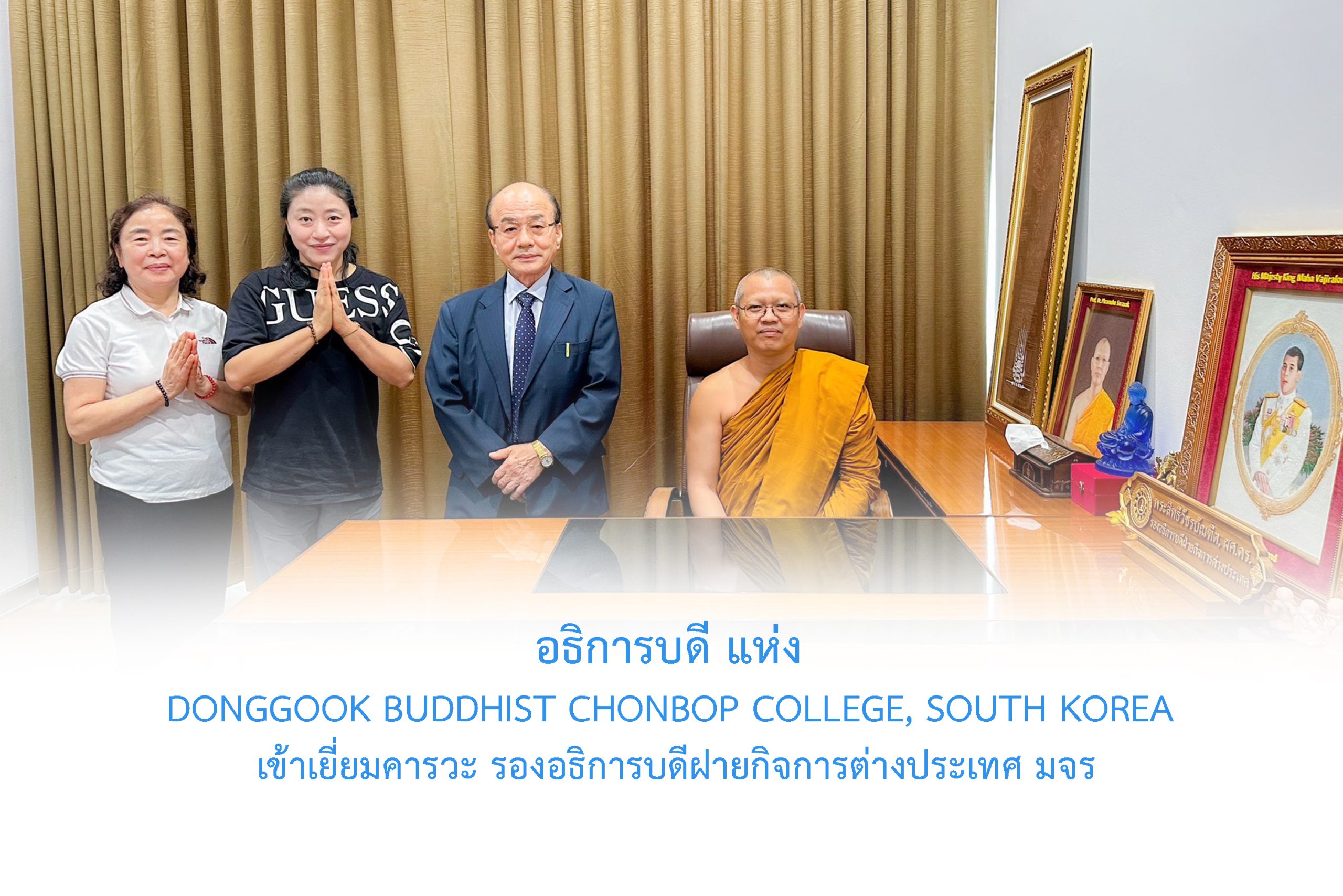 Dr. Hu Sung Hyun, The Rector of Donggook Buddhist Chonbop College, South Korea เดินทางมาจากเมืองปูซาน สาธารณรัฐเกาหลี เพื่อมาเยี่ยมคารวะ อธิการบดี และ รองอธิการบดีฝ่ายกิจการต่างประเทศ พร้อมกันนี้ ได้อาราธนา อธิการบดีและรองอธิการบดีฝ่ายกิจการต่างประเทศ เดินทางเยือนสาธารณรัฐเกาหลี เดือนมิถุนายน ศกนี้ ฯ