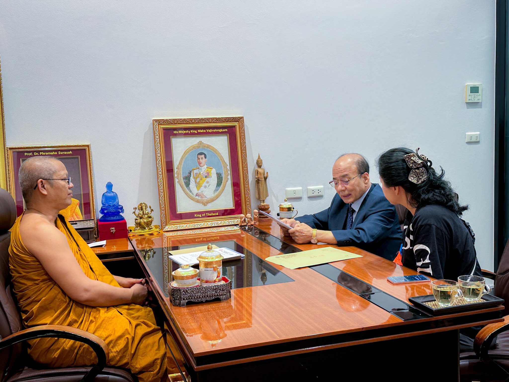 วันพุธที่ ๒๕ กุมภาพันธ์ พ.ศ.๒๕๖๙ เวลา ๑๐.๐๐ น. พระสิทธิวัชรบัณฑิต รองอธิการบดีฝ่ายกิจการต่างประเทศ ปฏิสันถาร Dr. Hu Sung Hyun, The Rector of Donggook Buddhist Chonbop College, South Korea เข้าเยี่ยมคารวะ ณ สำนักงานรองอธิการบดีฝ่ายกิจการต่างประเทศ มจร พระนครศรีอยุธยา